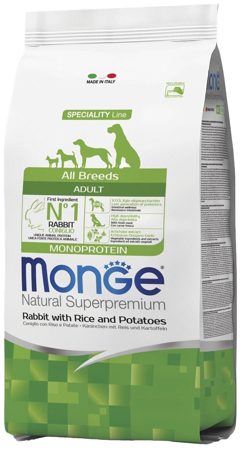 Сухой корм Monge Dog Speciality Line Monoprotein для взрослых собак всех пород, из кролика с рисом и картофелем 12 кг