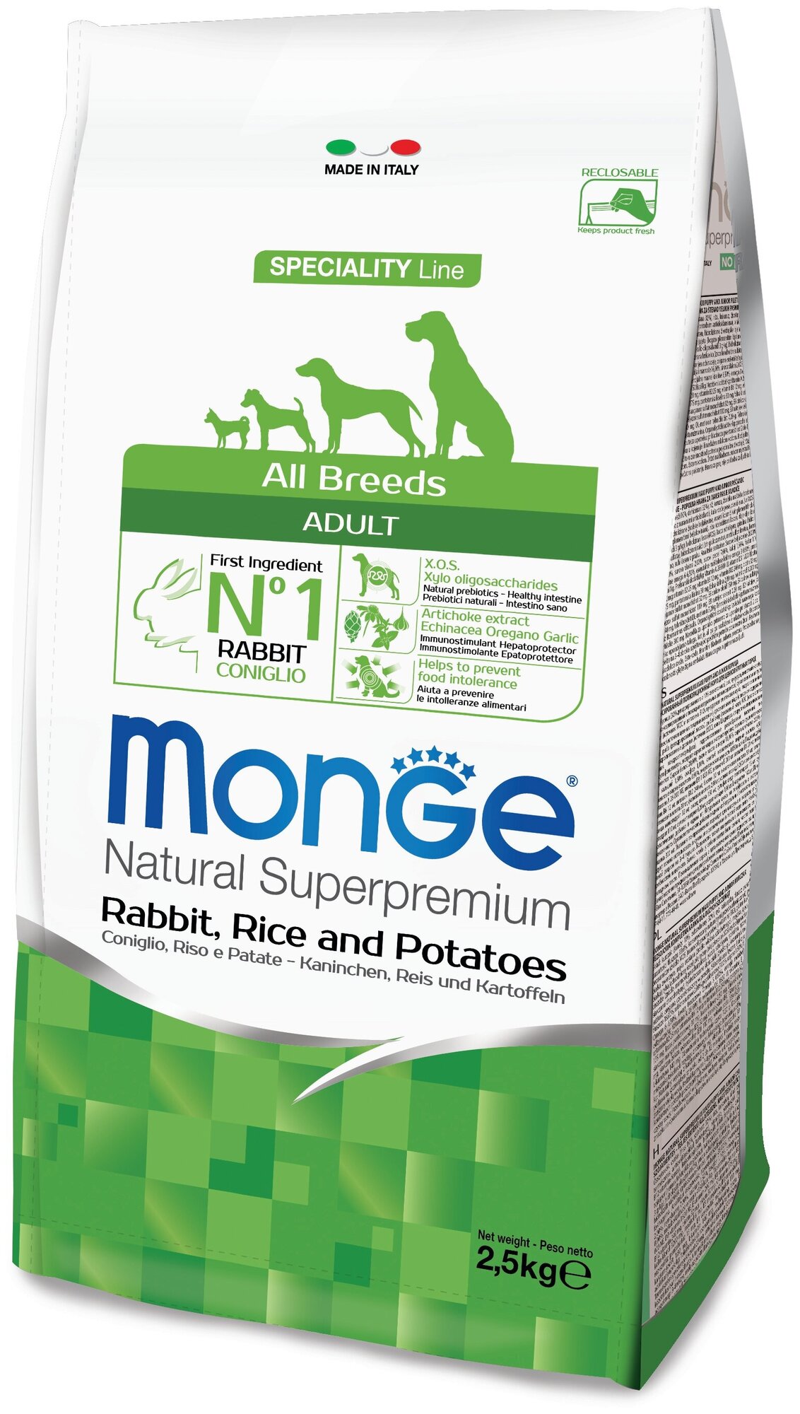 Сухой корм для собак всех пород Monge Dog Speciality line, гипоаллергенный, кролик с рисом и картофелем, 2.5 кг