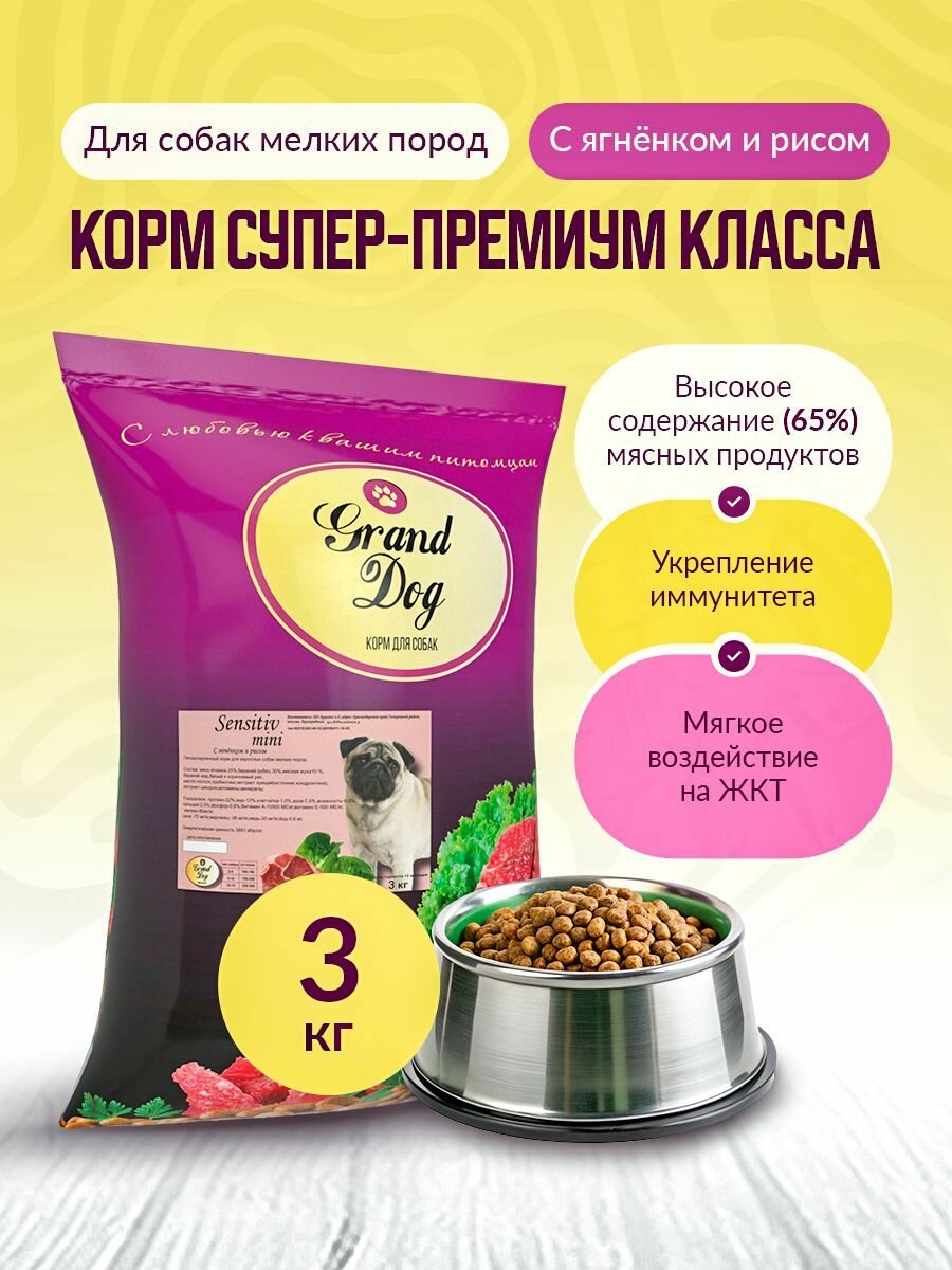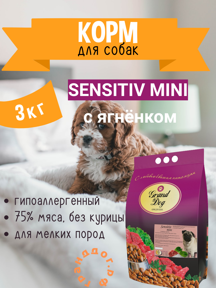 Сухой корм Grand Dog Sensitiv mini с ягнёнком и рисом гипоаллергенный корм для взрослых собак мелких пород 3 кг