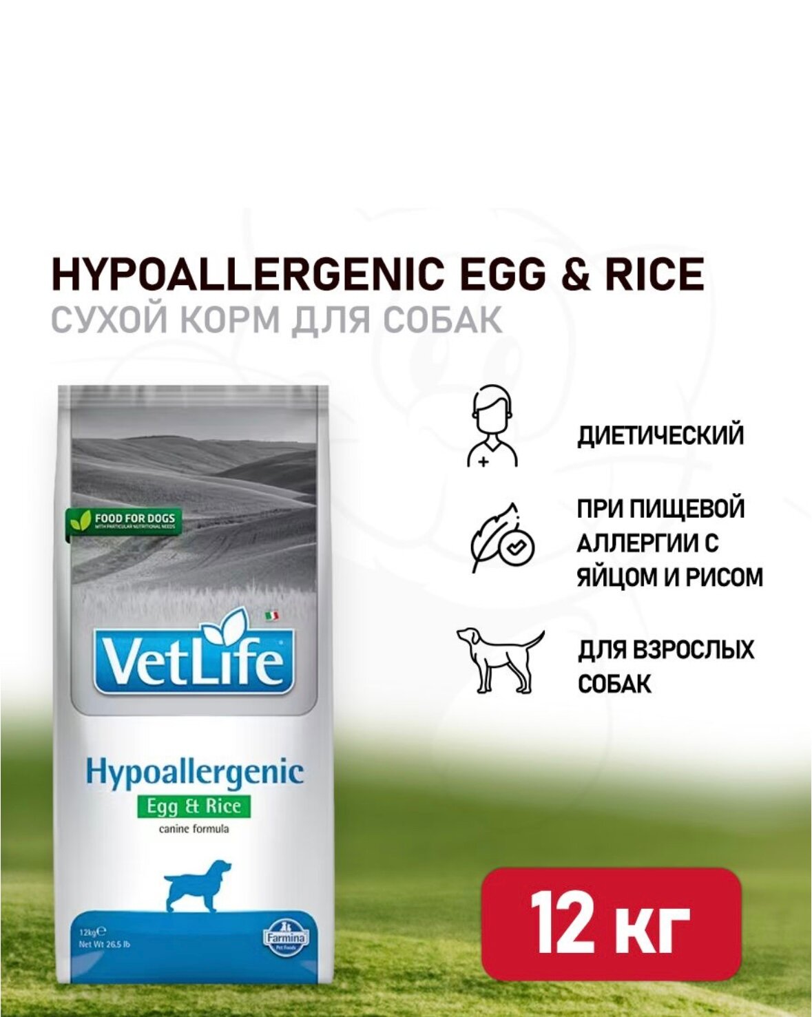 Корм Farmina Vet Life Hypoallergenic Egg & Rice для собак при пищевой аллергии и непереносимости, яйцо и рис, 12 кг