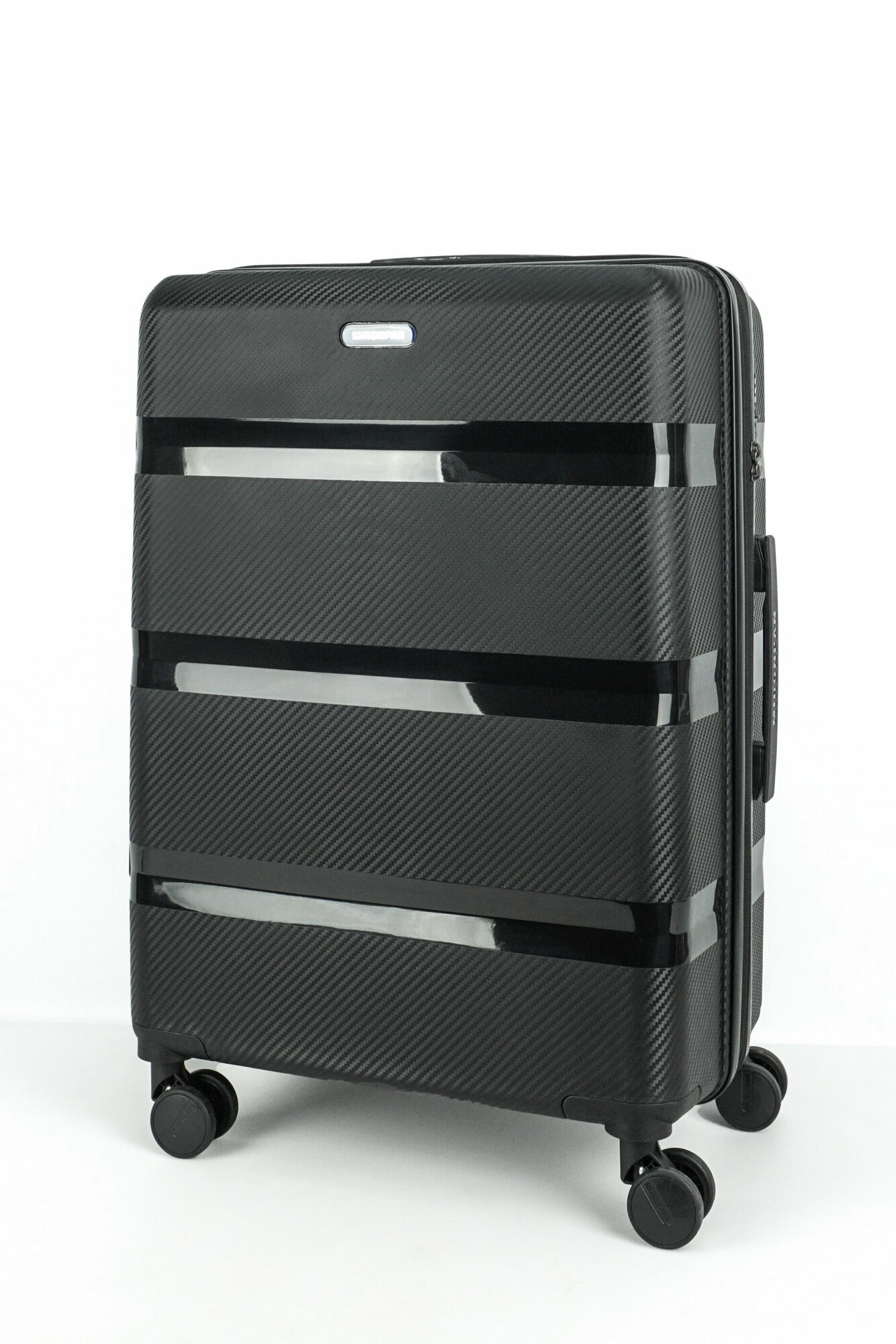 Купить Чемодан Sweetbags средний из полипропилена с расширением на 4-х колесах с TSA замком (3 гориз. полосы) черный M+
