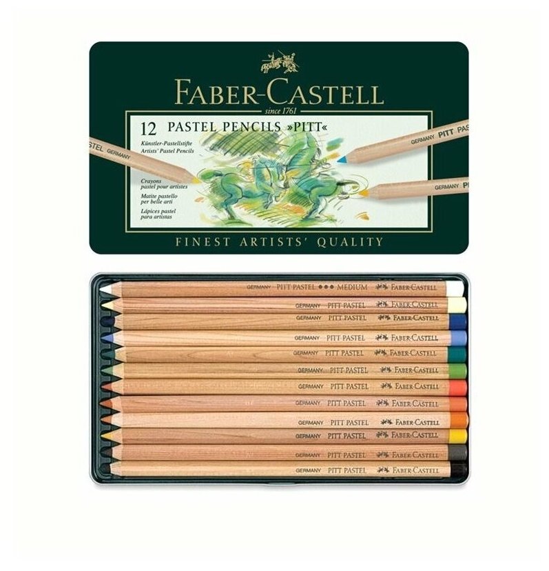 Купить Карандаши цветные пастельные Faber-Castell Pitt 12 цветов в металлической коробке 526194