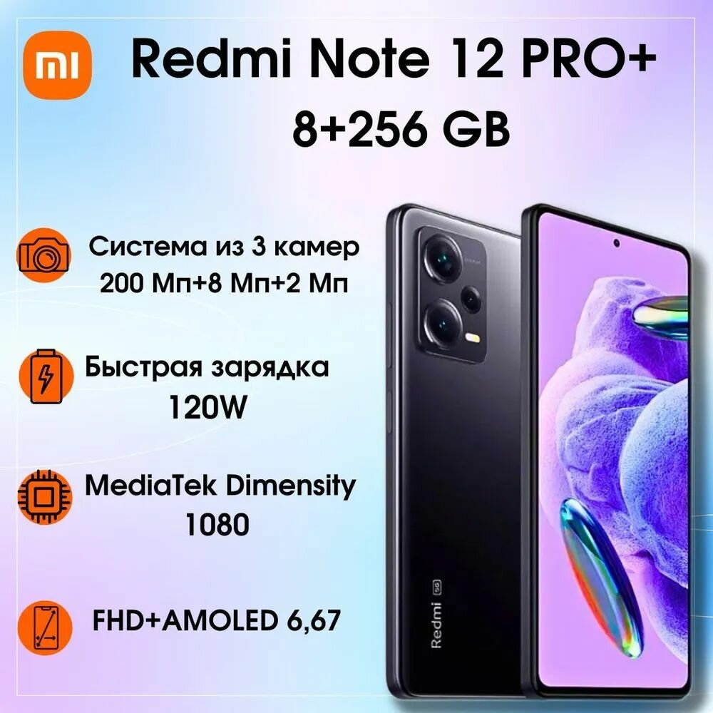 Смартфон Xiaomi Redmi Note 12 Pro+ 5G, 200МП, AMOLED экран 120Гц, 8/128ГБ встроенной памяти, Black (черный)