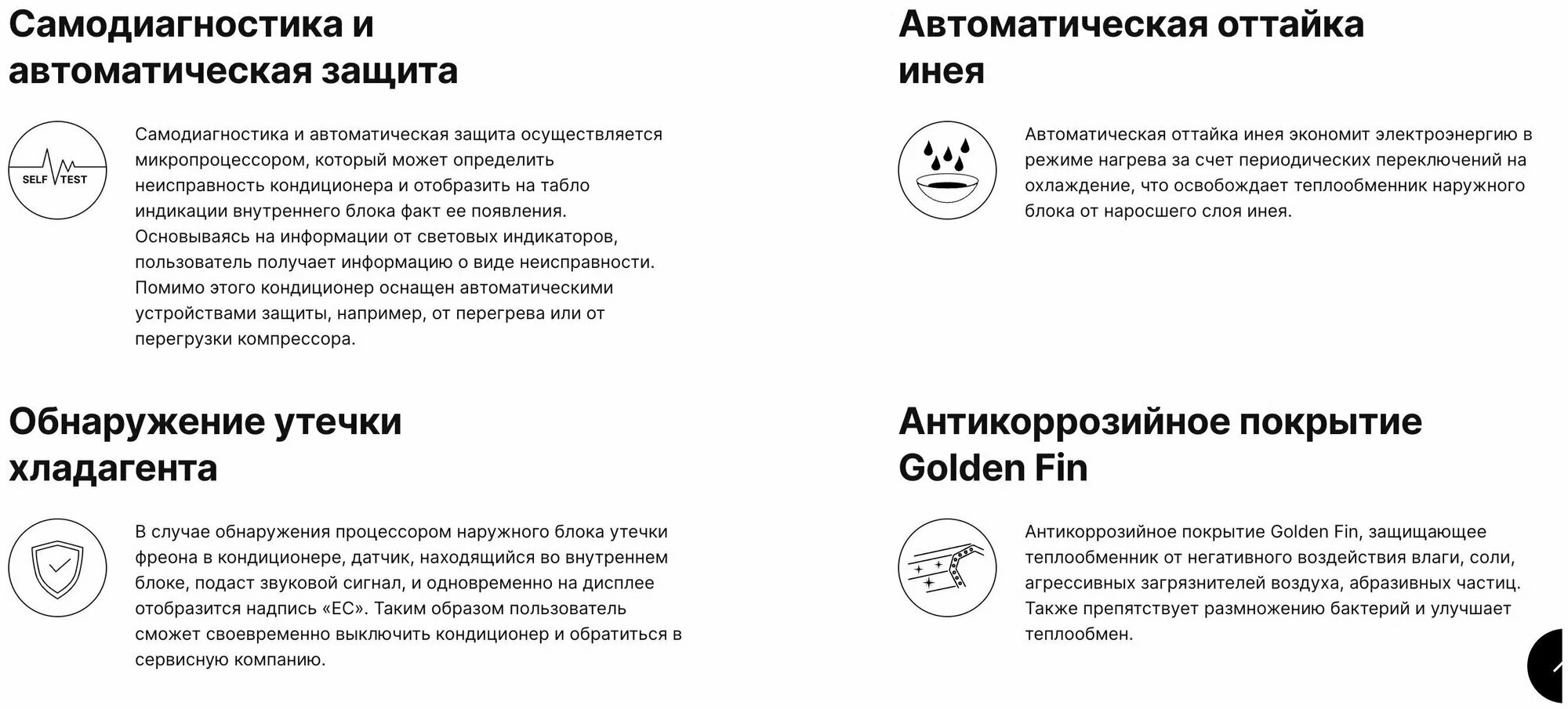 | Дополнительные функции | автоперезапуск / самодиагностика / самоочистка внутреннего блока |
