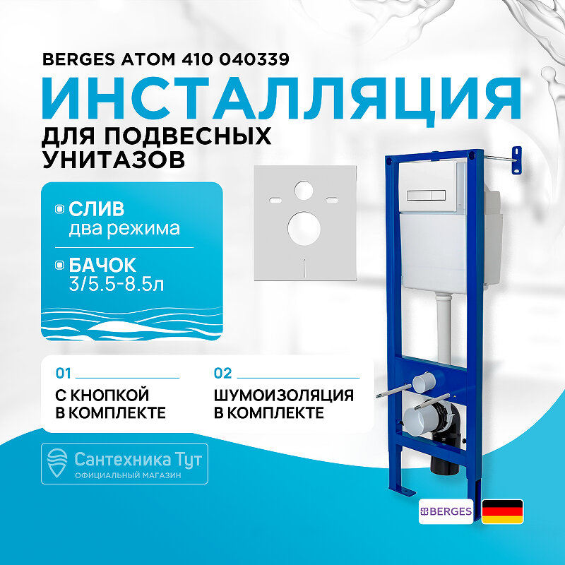 Инсталляция BERGES для скрытого монтажа унитаза атом Line 410 кнопка белая новинка!!!