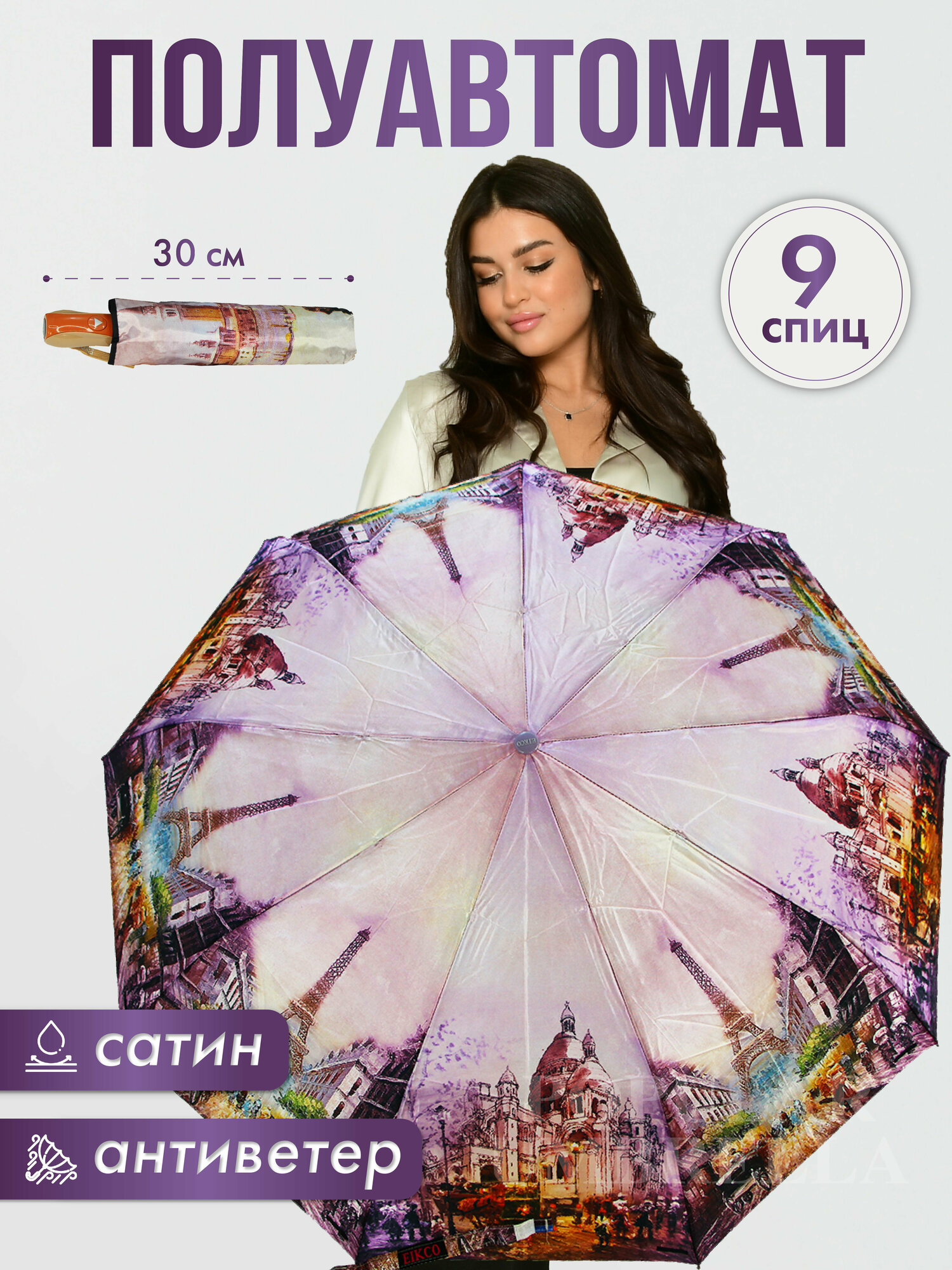 Женский складной зонт EIKCO полуавтомат E05/аметистовый