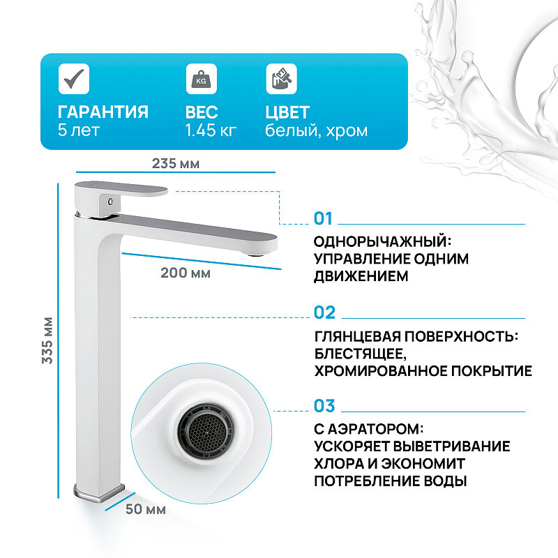 Смеситель для умывальника 35к G1083-82 GAPPO литой. высокий, белый-хром*