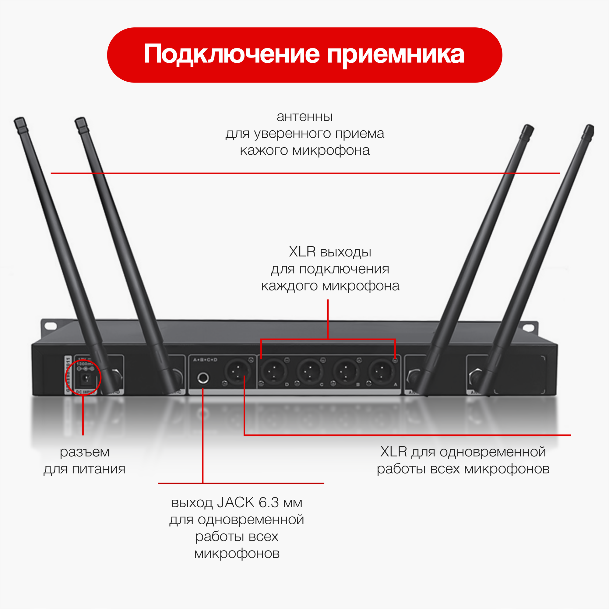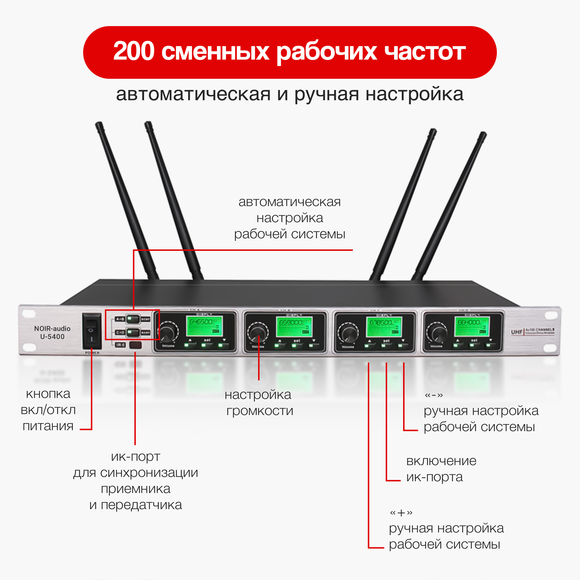Беспроводной микрофон NOIR audio U-5400-HS4/H с 2-мя ручными и 2-мя головными микрофонами для вокала, караоке, речи интересное: