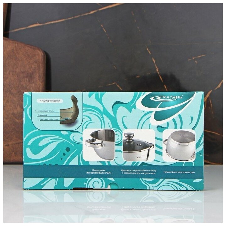Катунь Кастрюля «Антея», 5 л, d=24 см, капсульное дно, стеклянная крышка, индукция