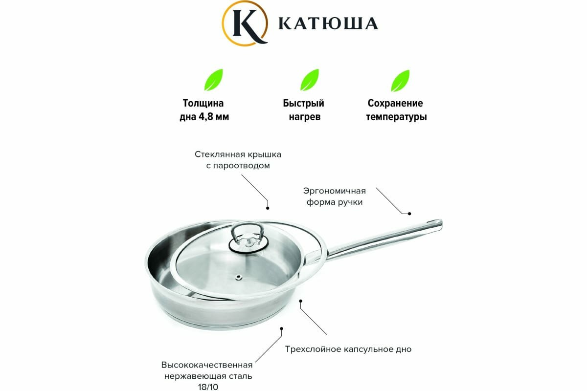 СохранитьСковорода катюша София 20см нерж.сталь стеклянная крышка индукция интересное: