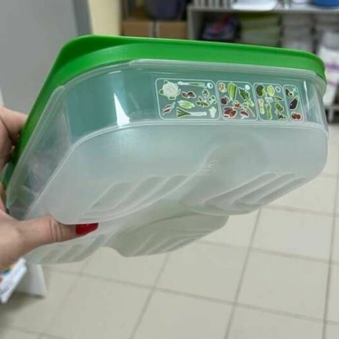 | Отзыв: | Использую подобные контейнеры всех размеров, храню зелень, фрукты и овощи в холодильнике в месте зоны свежести. Вынула родные контейнеры и заменила этими. Вся растительность хранится гораздо дольше: быстро не вянет, сохраняет свежесть. Если я могу хранить зелень в холодильнике дня четыре, то с этим контейнером срок может увеличиться до 2 недель (больше проверить не было возможности))) |