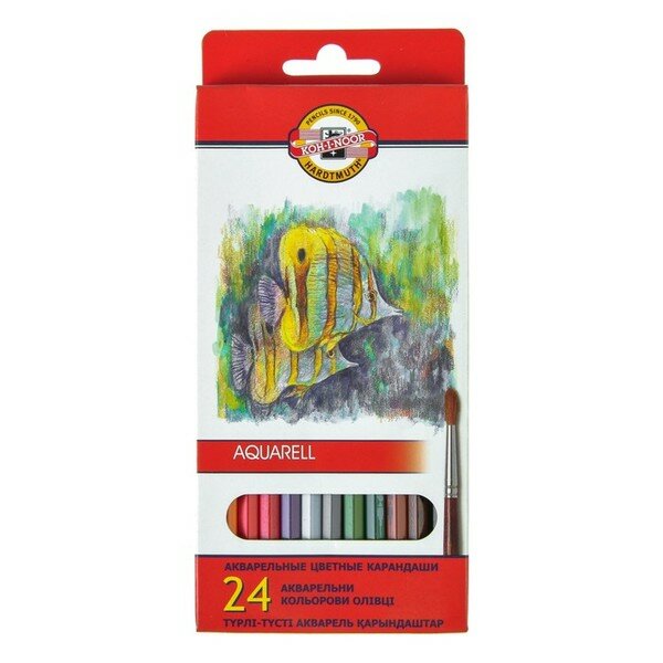 Купить Карандаши акварельные 24 цвета 3.0 мм Koh-I-Noor "Рыбки" 3718, картонная коробка, европодвес, L=175