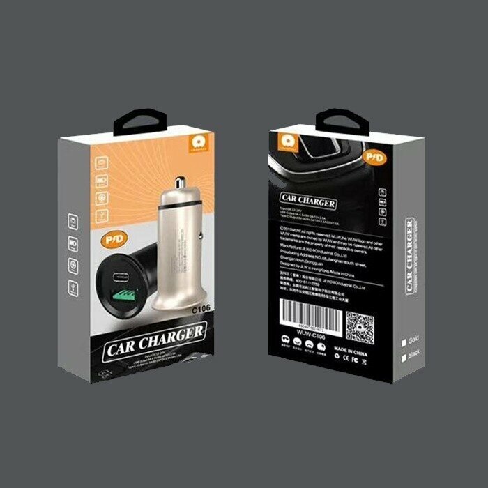 Купить Автозарядка WUW-C106 USB & Type-c PD 30W (быстрая зарядка) черный