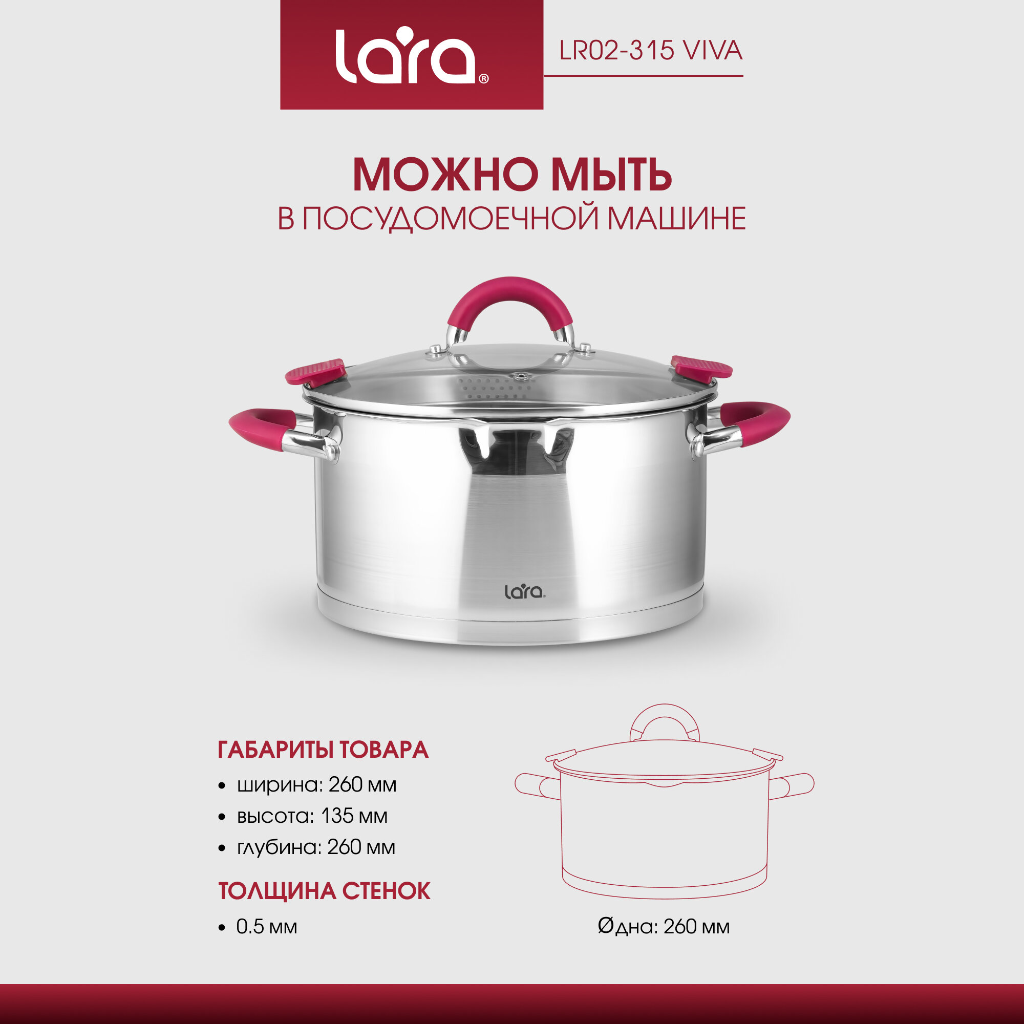 Кастрюля LARA Viva LR02-313, 4.1л, с крышкой, серебристый