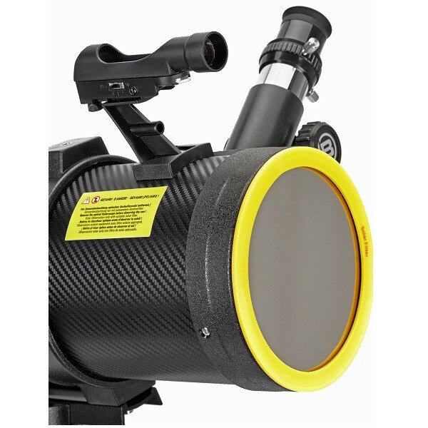 | Комплектация | оптическая труба телескопа; окуляр 4 мм, 1,25" (250х); окуляр 20 мм, 1,25" (50х); линза Барлоу 3х, 1,25"; искатель с красной точкой; адаптер для смартфона; солнечный фильтр; экваториальная монтировка (EQ3); ручки тонких движений; противовес; алюминиевая тренога; лоток для аксессуаров; инструкция по эксплуатации и гарантийный талон |