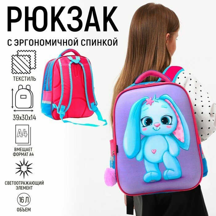 Calligrata Рюкзак каркасный школьный Calligrata "Зайка" + брелок, 39 х 30 х 14 см интересное: