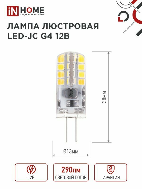 Лампа светодиодная LED-JC 3Вт 12В 4000К нейтр. бел. G4 290лм IN HOME 4690612036021