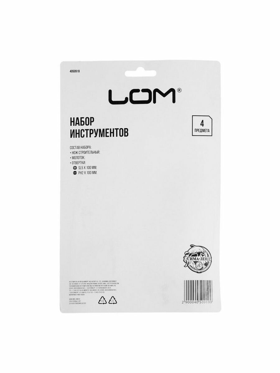 Набор инструментов ЛОМ, молоток, 2 отвертки, нож, 4 предмета 4050919