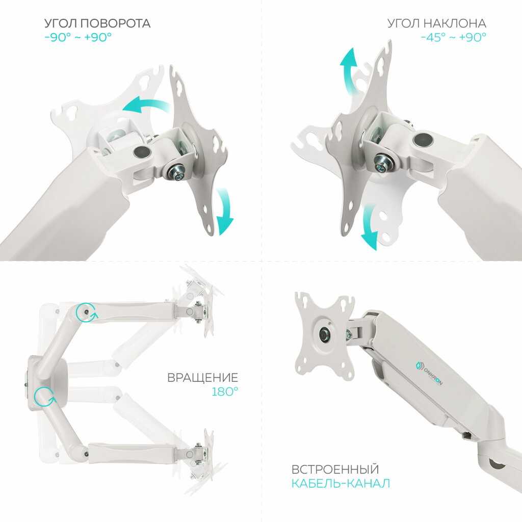 СохранитьКронштейн настольный для TV/монитора ONKRON G160, 13"-32", VESA 75x75мм-100x100мм, наклонный, поворотный, до 13 кг (G160W) интересное:
