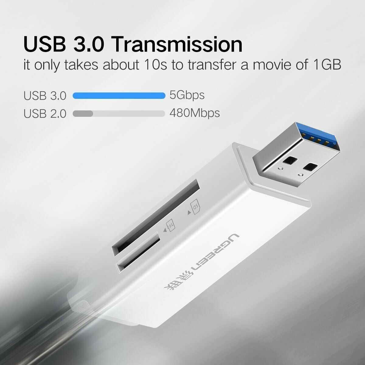Кардридер UGREEN CM104 USB 3.0 to TF, SD Dual Card Reader, цвет белый (40753)