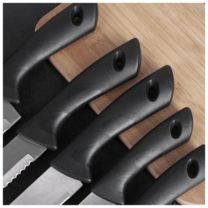 Market-Space Набор кухонных ножей «Энеолит», 5 предметов: лезвие 8,5 см, 12,5 см, 19,5 см, 20 см, 20 см, цвет чёрный