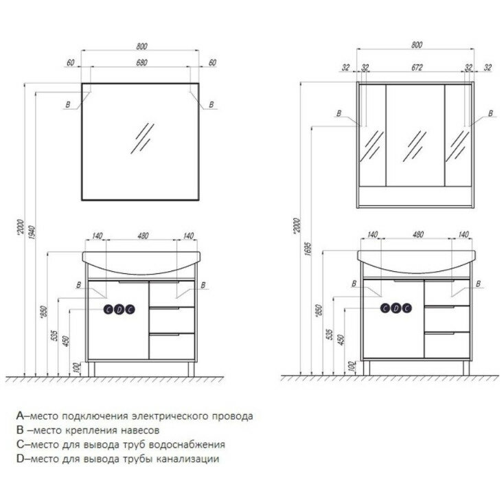 | Назначение | тумба для ванной комнаты / под раковину |