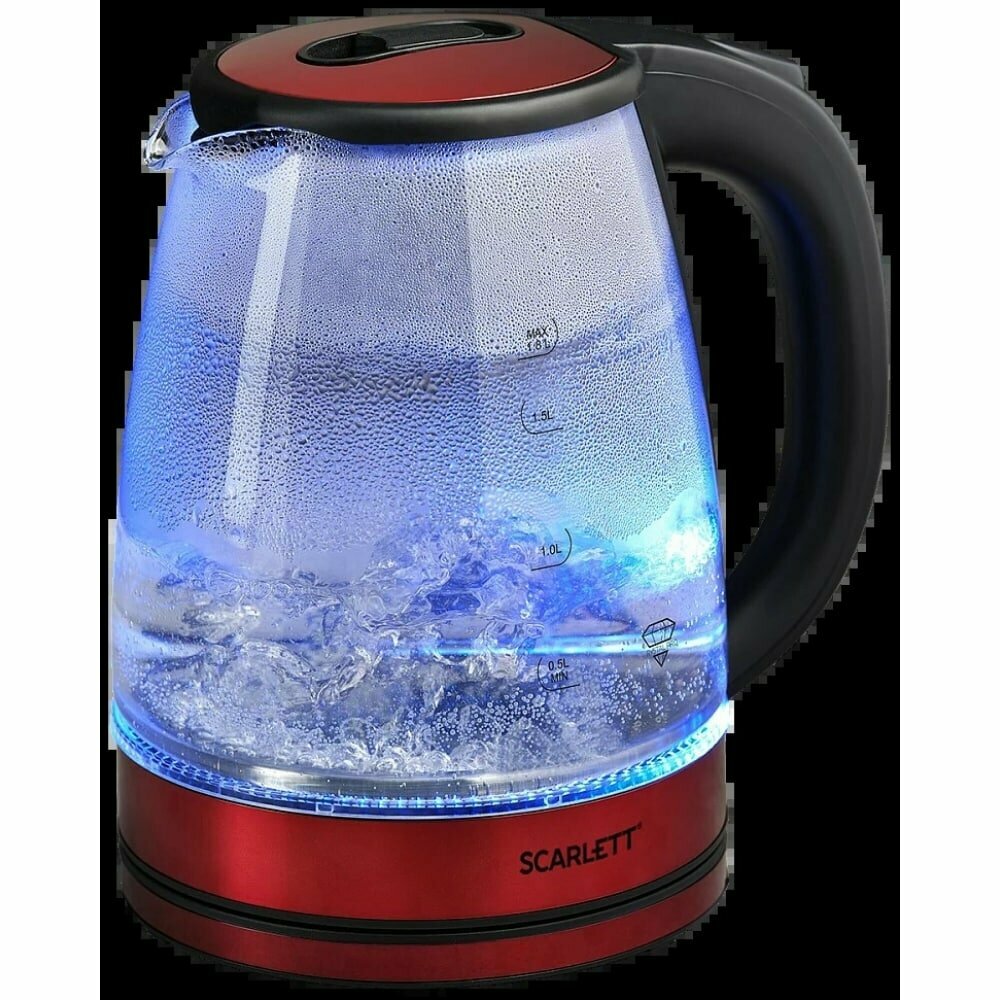 Чайник Scarlett SC-EK27G102,1800 Вт, 1.8 л, корпус-стекло, краcный