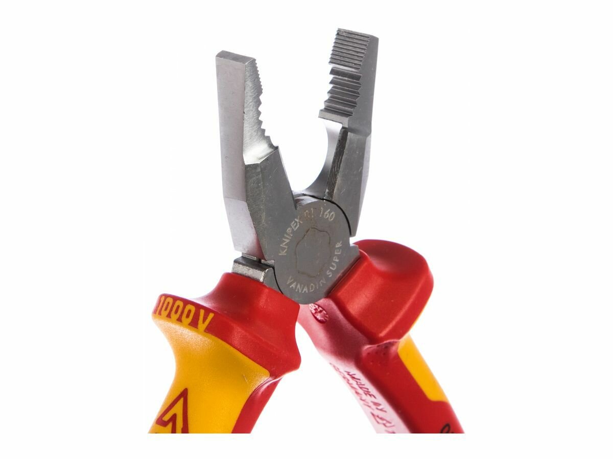 Плоскогубцы KNIPEX комбинированные VDE для тяжёлых нагрузок, 160 мм, хром, 2-комп диэлектрические ручки KN-0106160