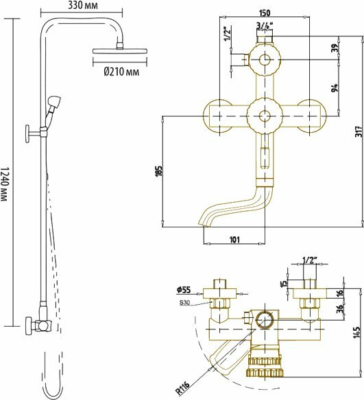 | Дополнительная информация | высота стойки для душа: 1240 мм; диаметр верхнего душа: 210 мм |
