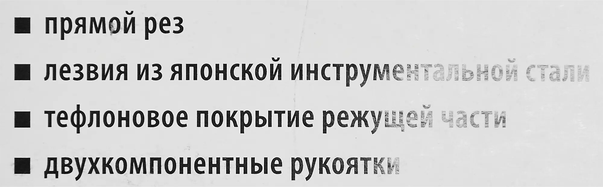 | Особенности | защитное покрытие лезвий, прецизионная заточка, противоскользящее покрытие рукояток, фиксатор лезвий |