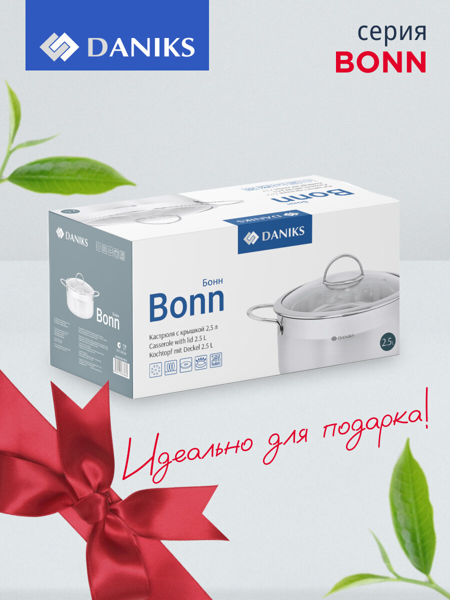 Кастрюля нержавеющая сталь, 2.5 л, с крышкой, Daniks, Бонн, GS-01319-18CA