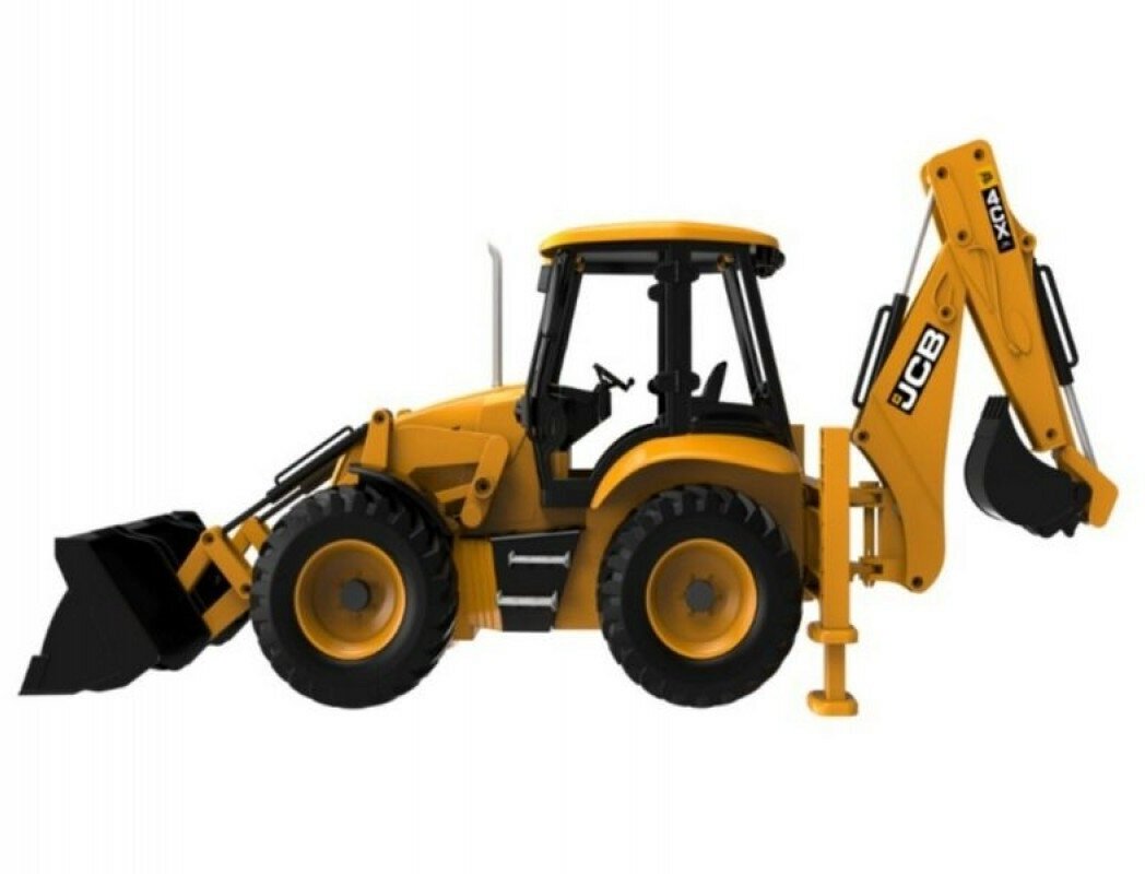 Экскаватор-погрузчик многофункциональный JCB 4CX RTR (E589-003), 1:20, 41 см, свет, желтый