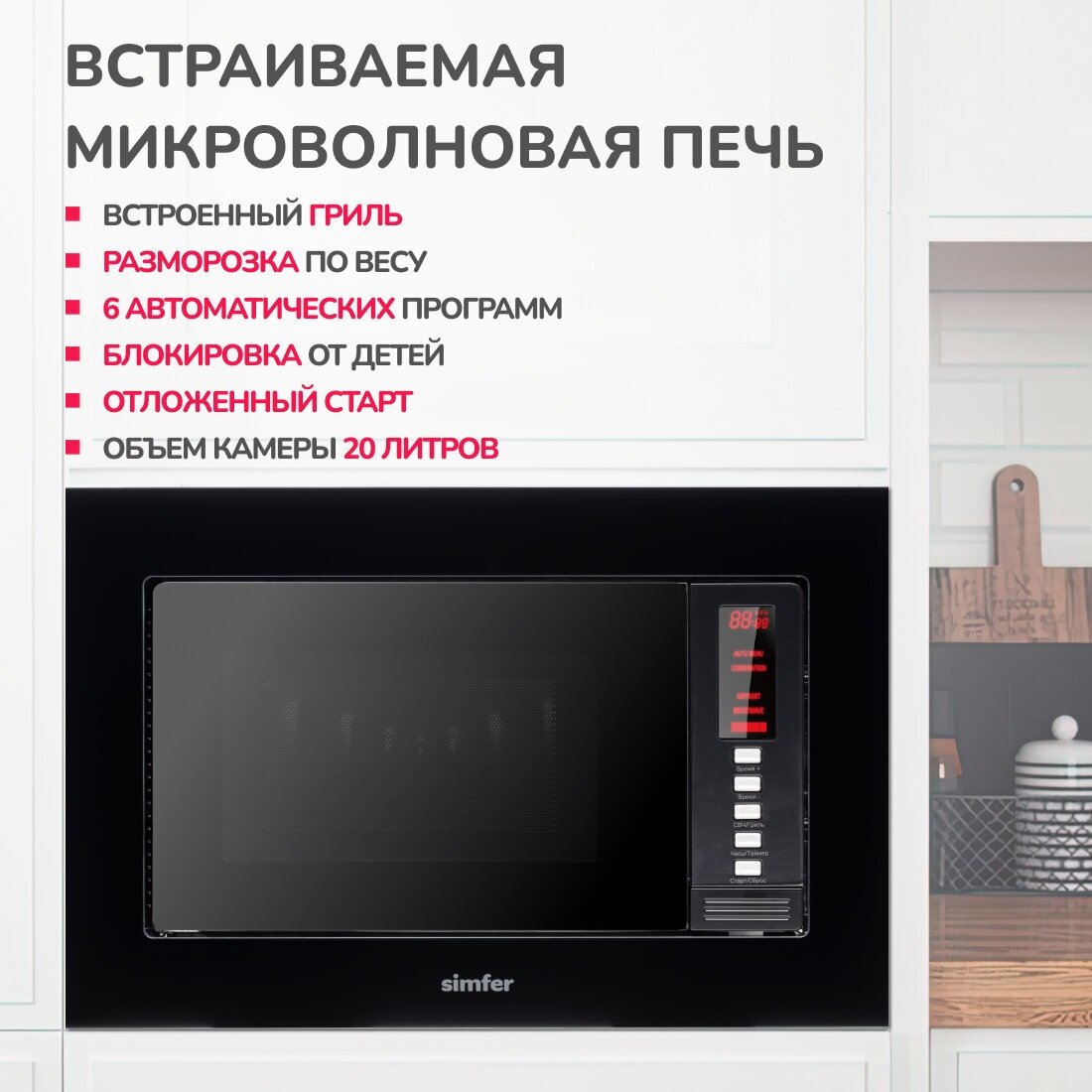 Встраиваемая микроволновая печь Simfer MD2220, 20 литров, 1080 Вт, Черный
