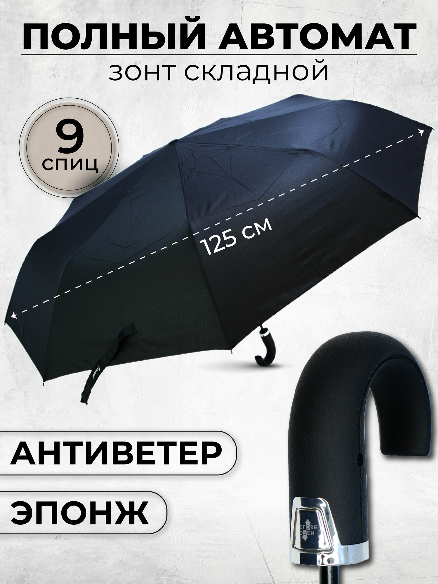 Зонт мужской автомат, зонтик женский складной антиветер LAN939, черный интересное: