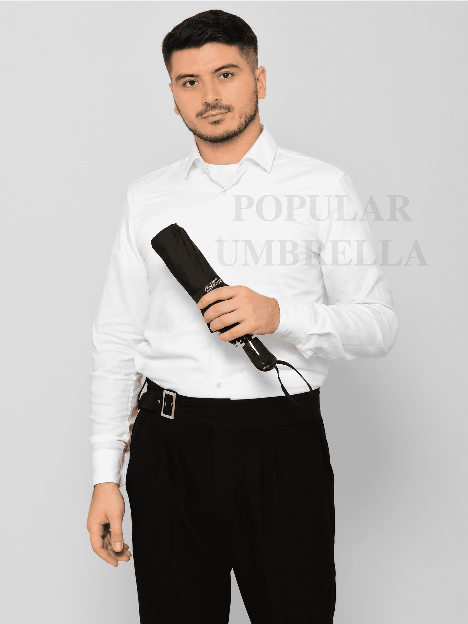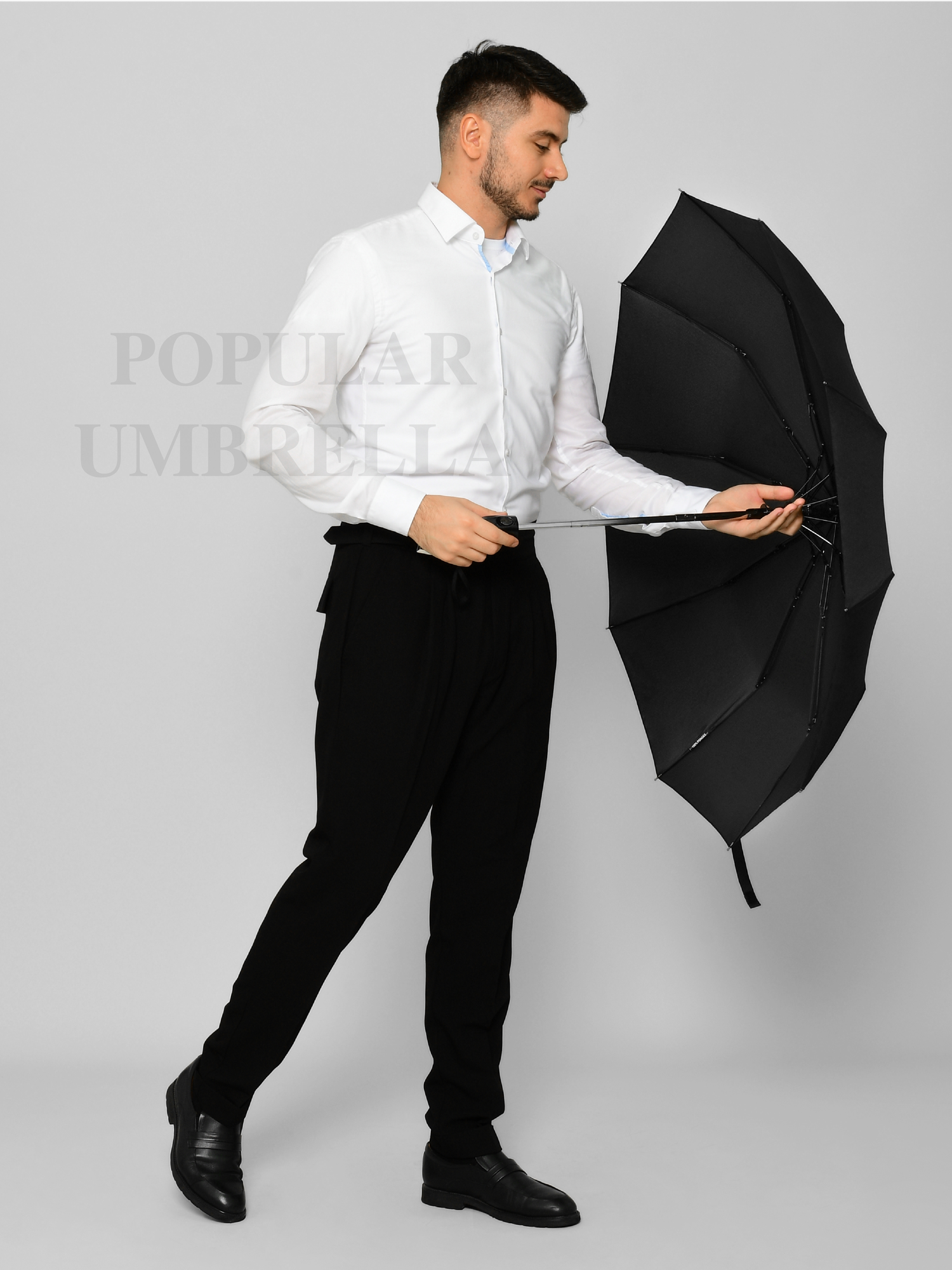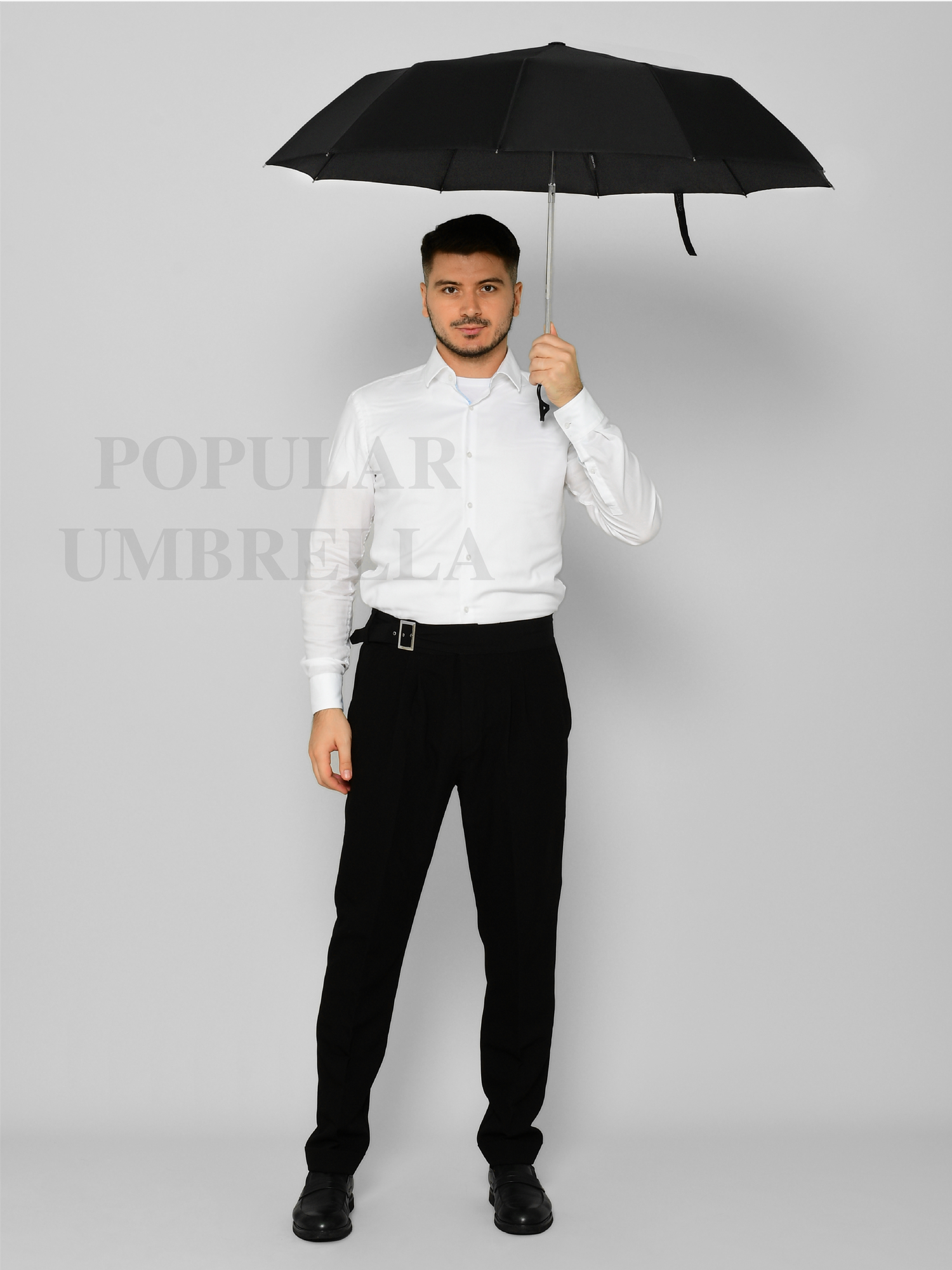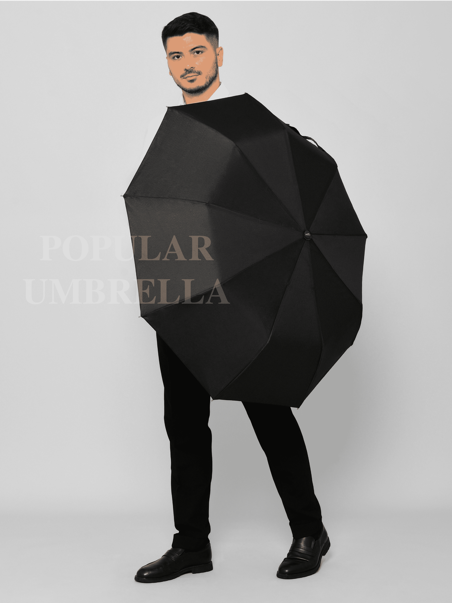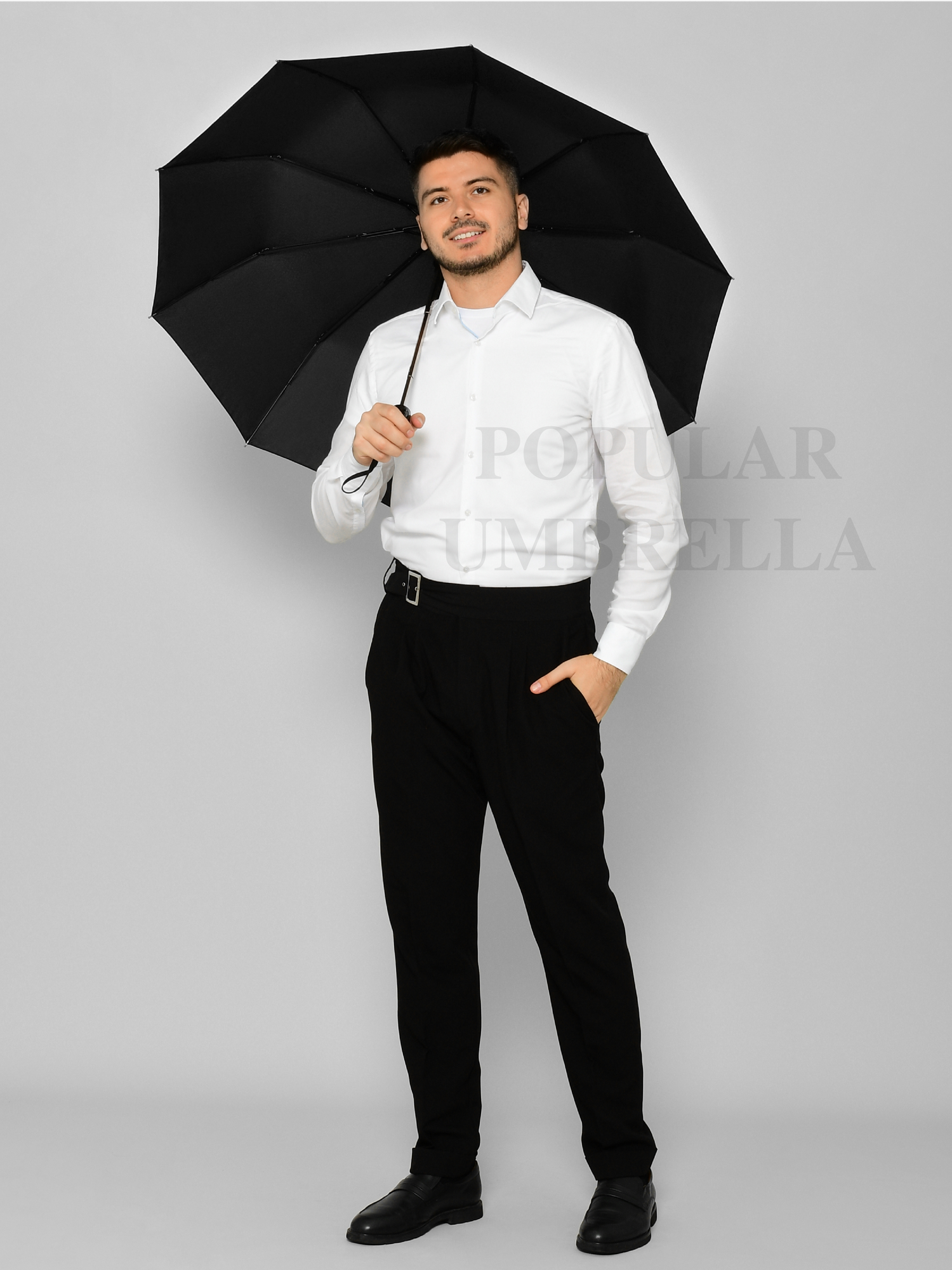 Мужской складной зонт Popular Umbrella полуавтомат 1047A/черный