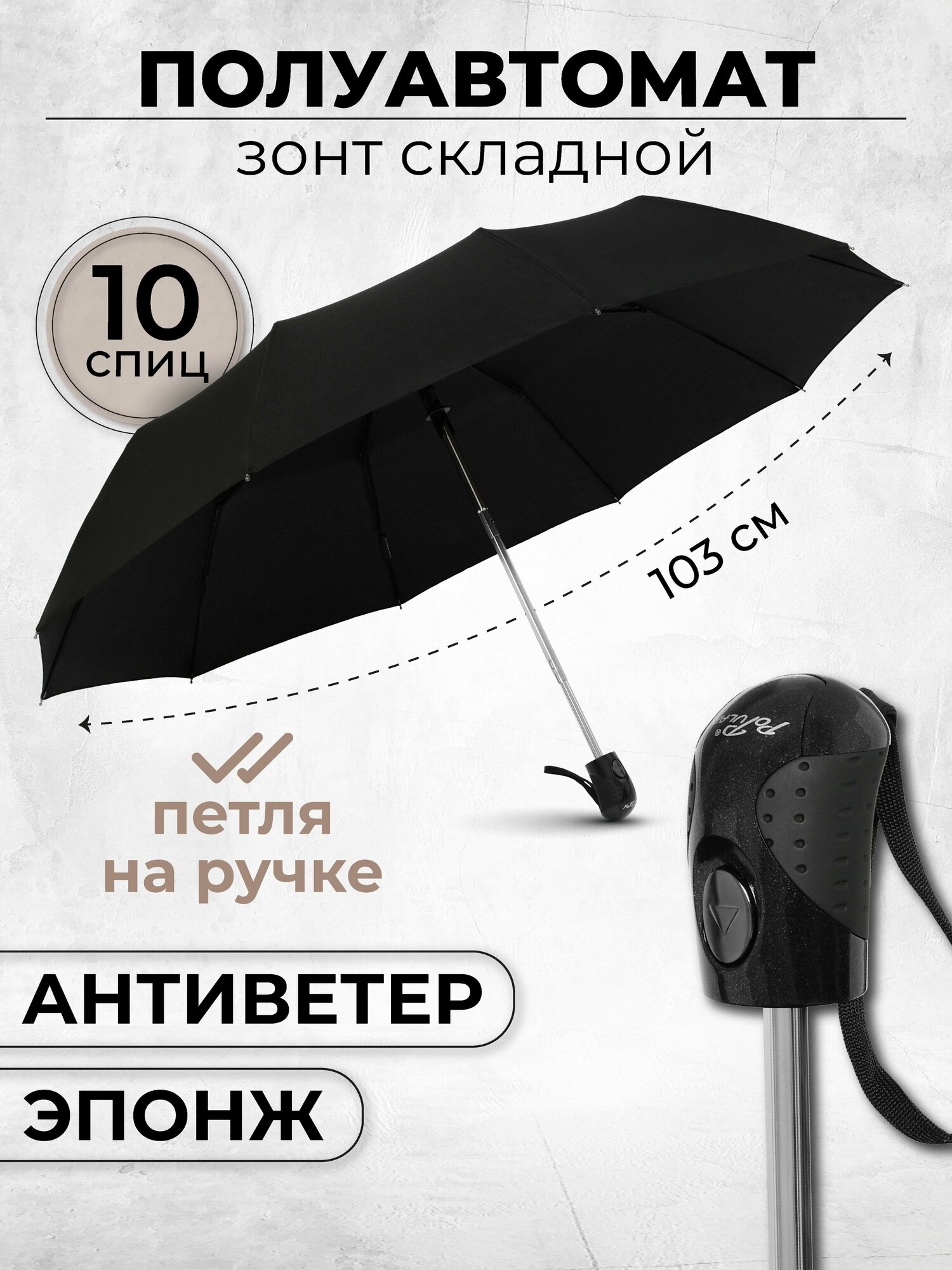 Зонт мужской полуавтомат, зонтик женский складной антиветер 1047A, черный интересное: