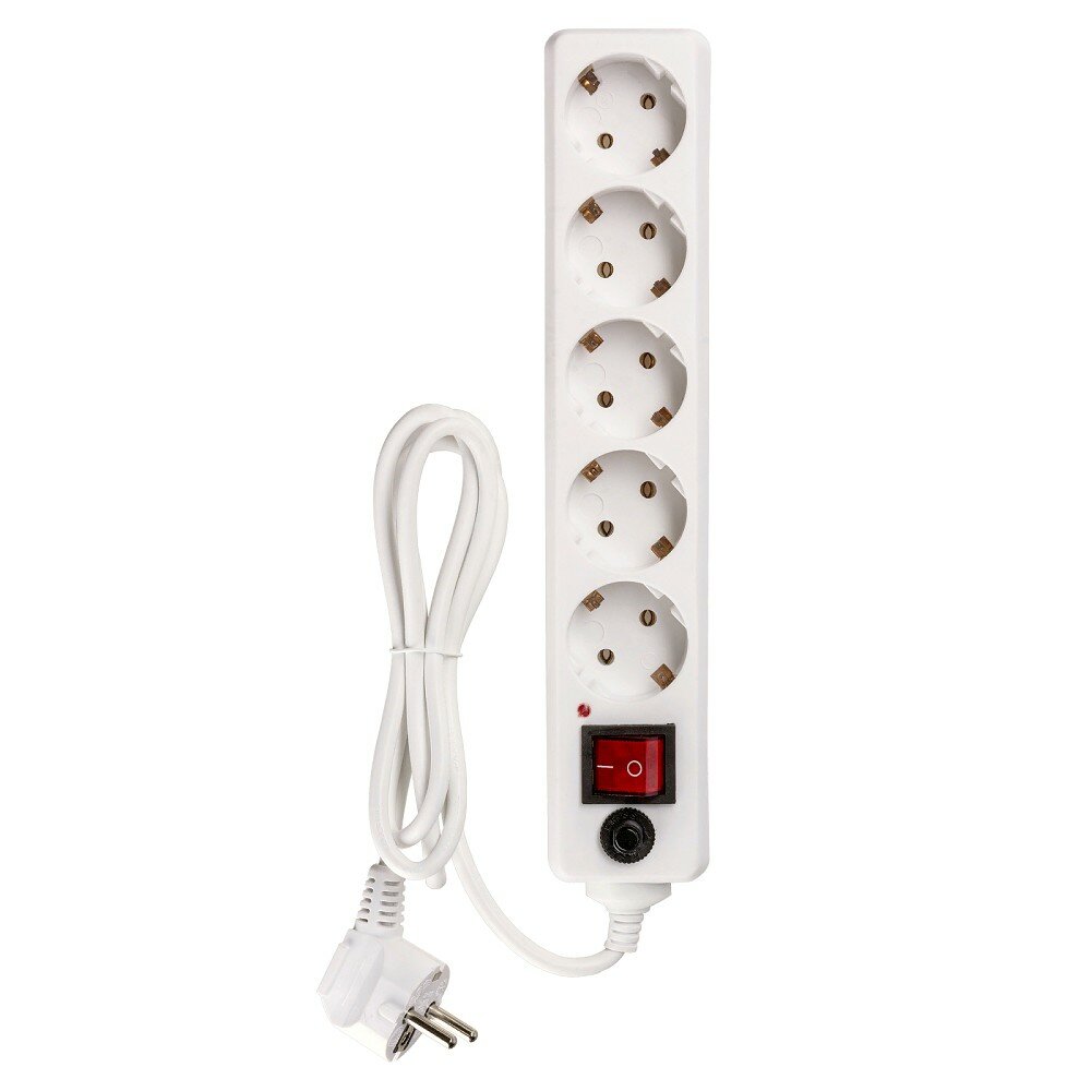 Сетевой фильтр 5 гнезд, 3 м, ПВС, 3х0.75 мм², с заземлением, 10 А, выключатель, белый, TDM Electric, СФ-05В, SQ1304-0017