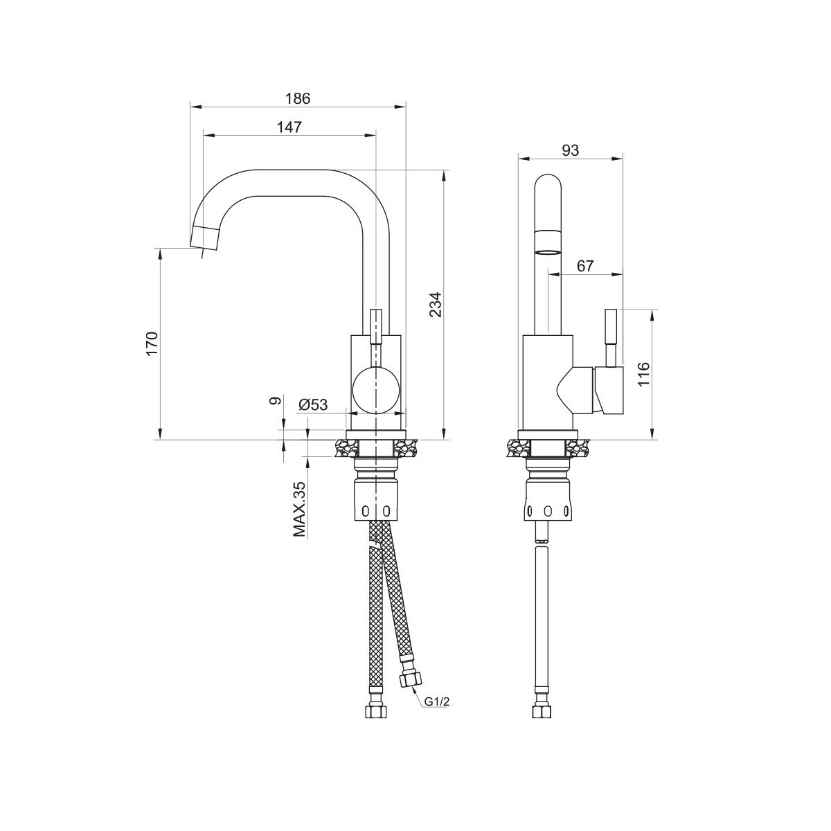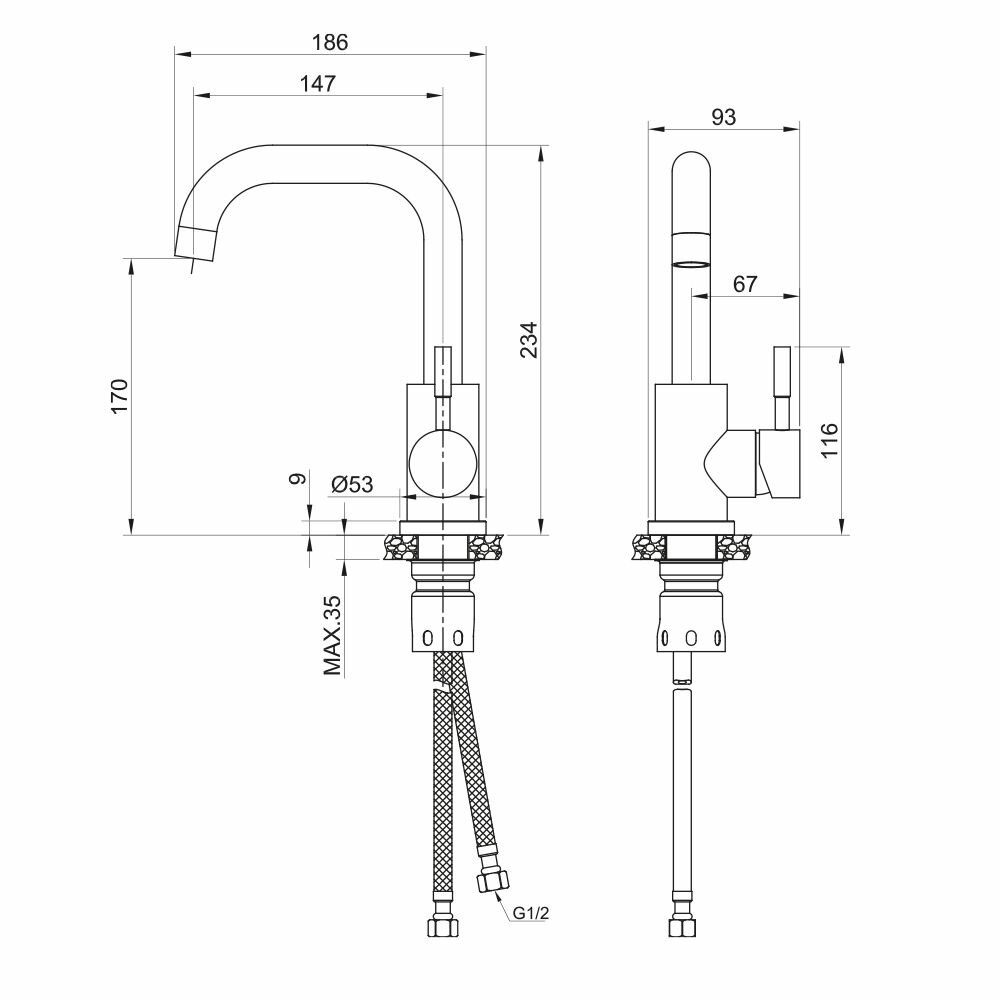 | Присоединительный размер | 1/2" x 1/2" |