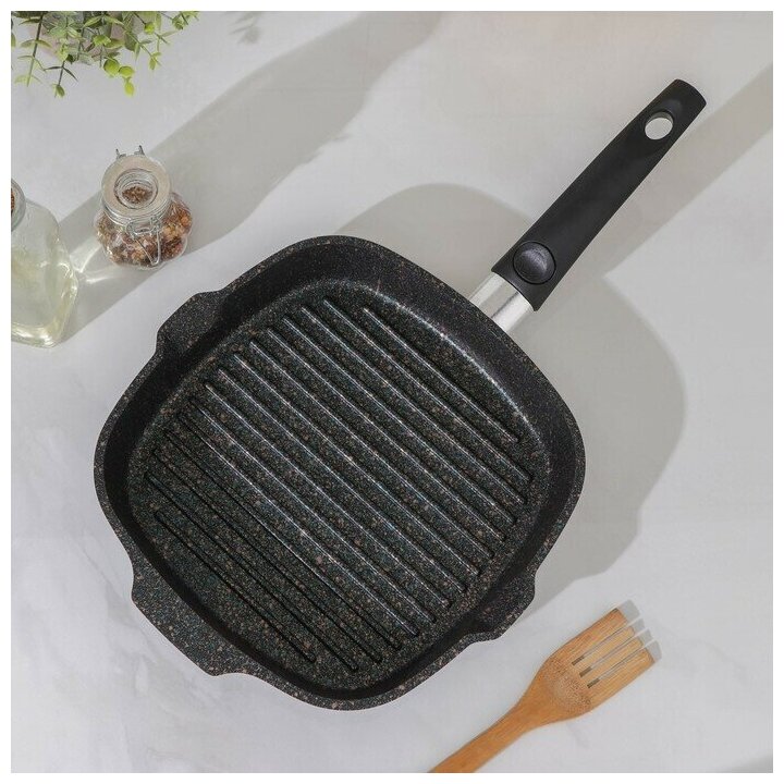 Сковорода-гриль Granit ultra, 26×26 см, съёмная ручка, стеклянная крышка, антипригарное покрытие, цвет чёрный