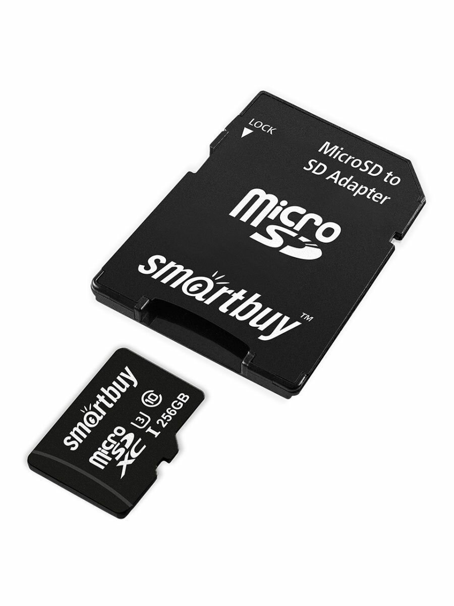 Карта памяти 256Gb - SmartBuy MicroSDXC Class 10 Pro UHS-I U3 SB256GBSDCL10U3-01 с адаптером SD