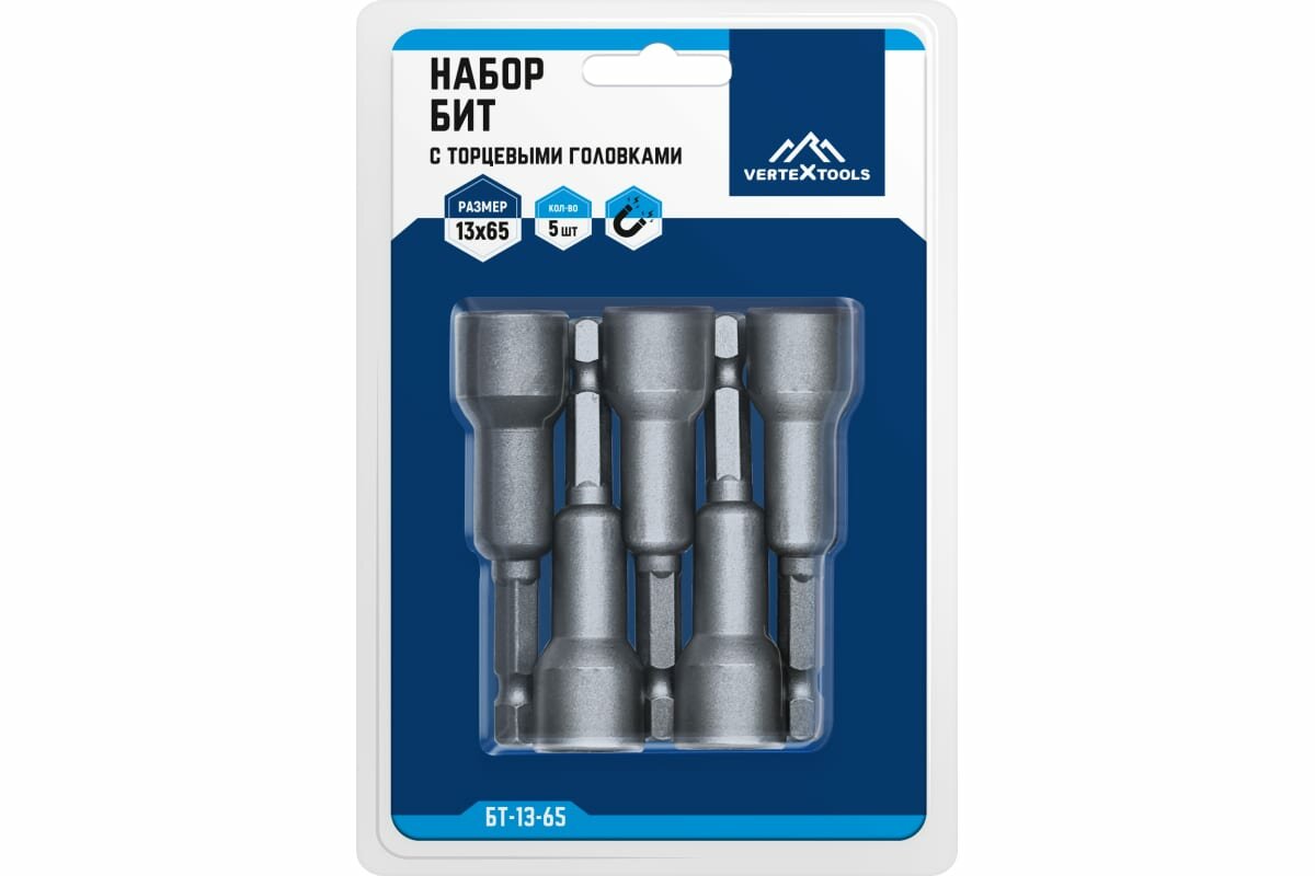 Биты с торцевыми головками VertexTools 13х65 мм, 5 шт.