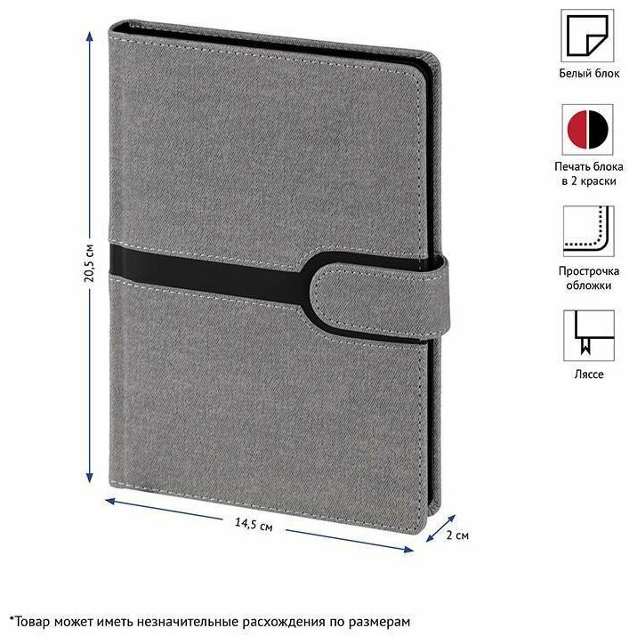 Купить Ежедневник недатированный A5 OfficeSpace Denim (160 листов) обложка кожзам, серый, черный срез (ENA5_32537)