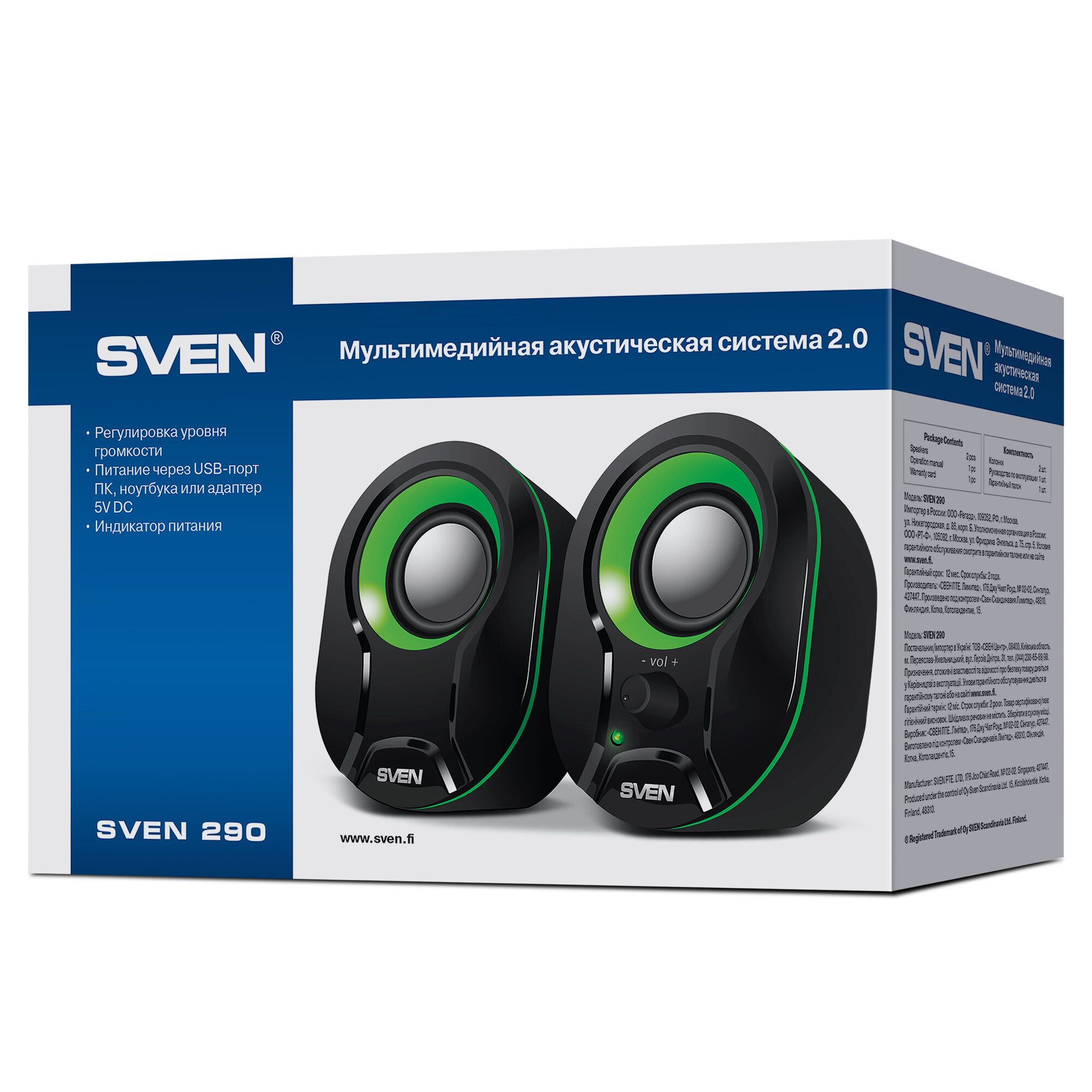 SVEN АС SVEN 290, черный-зеленый (5 Вт, питание USB)