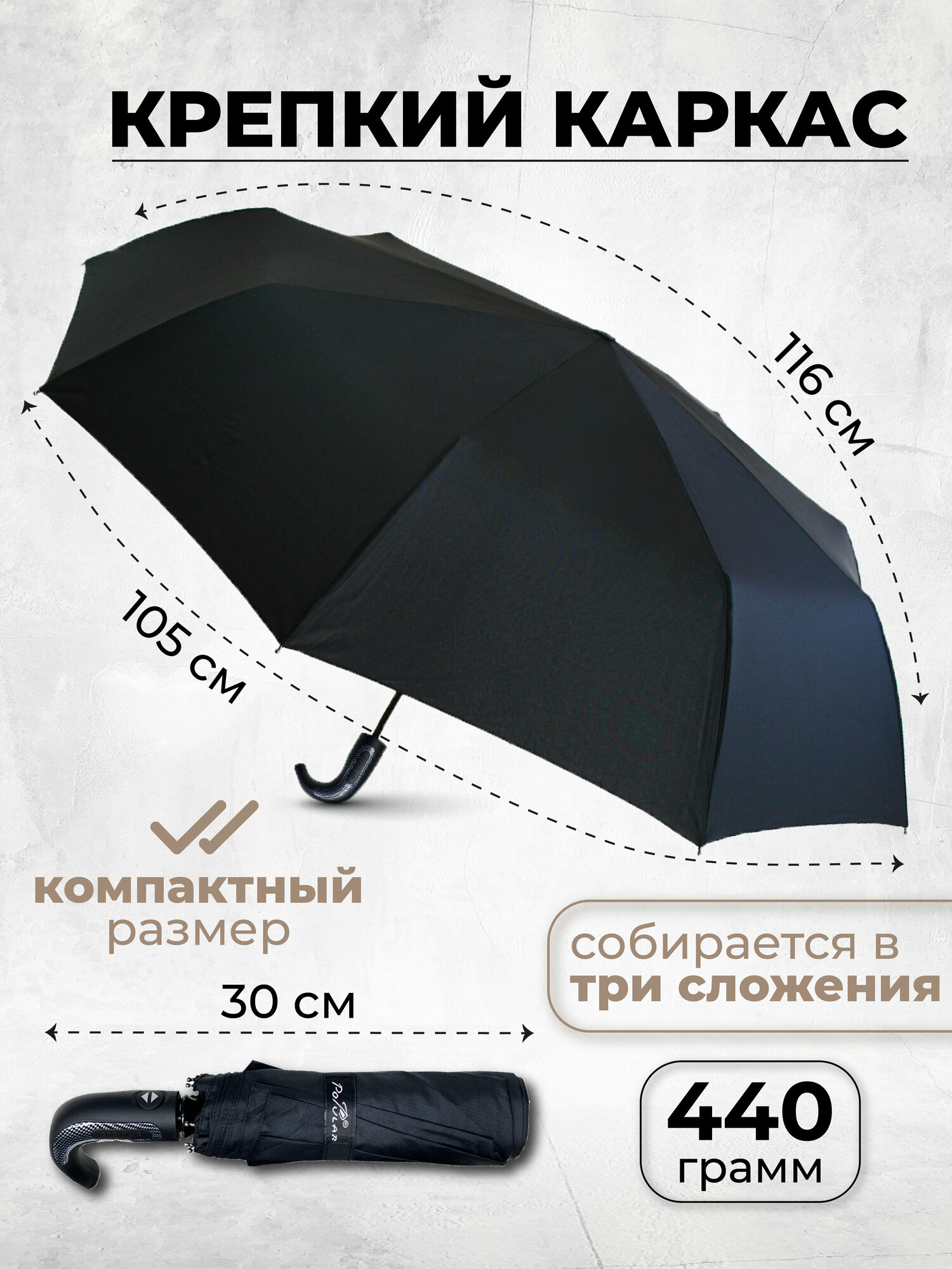Мужской складной зонт Popular Umbrella автомат 1664/черный