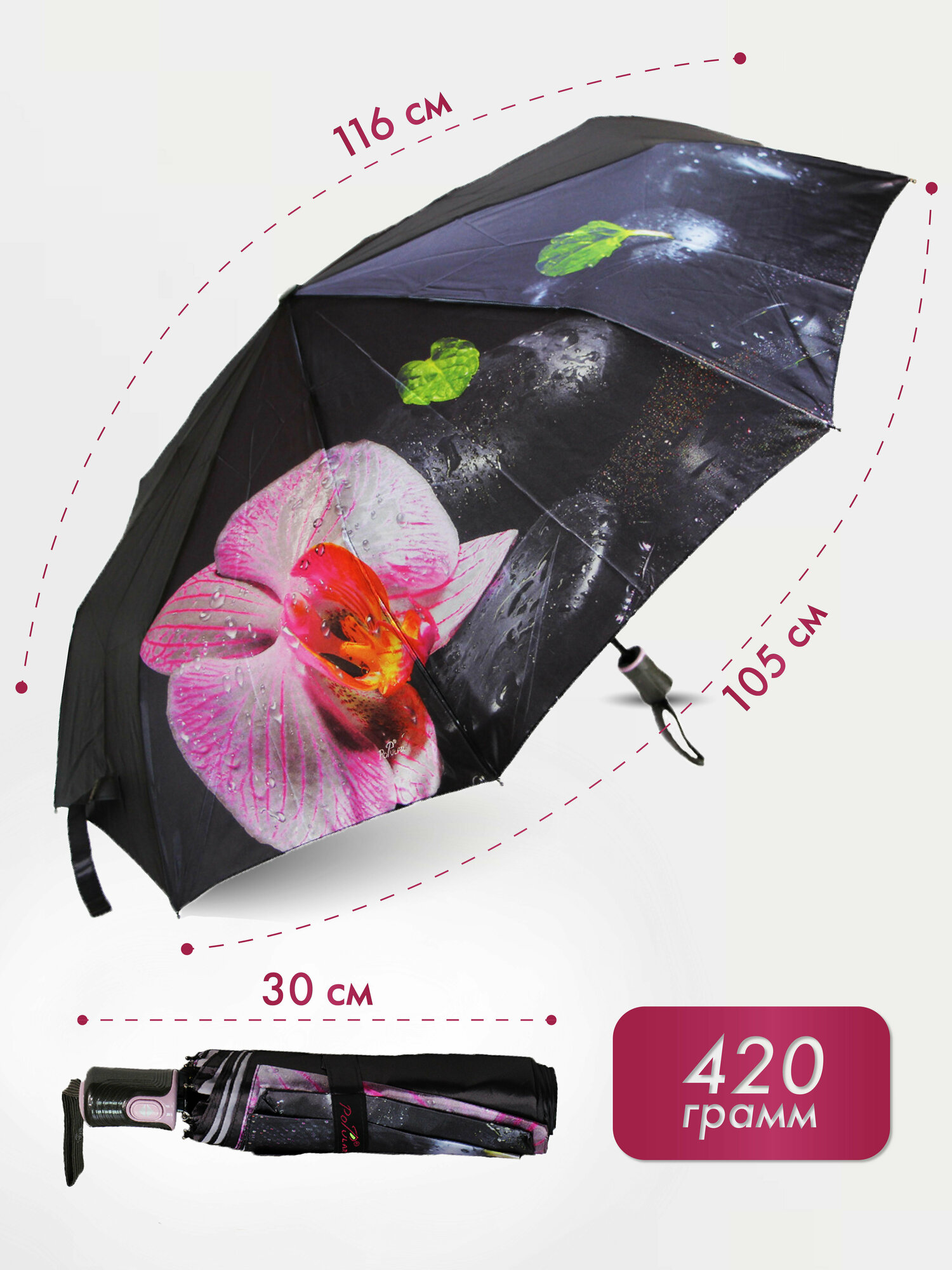 Зонт женский автомат, зонтик взрослый складной антиветер 1296/Черный-A