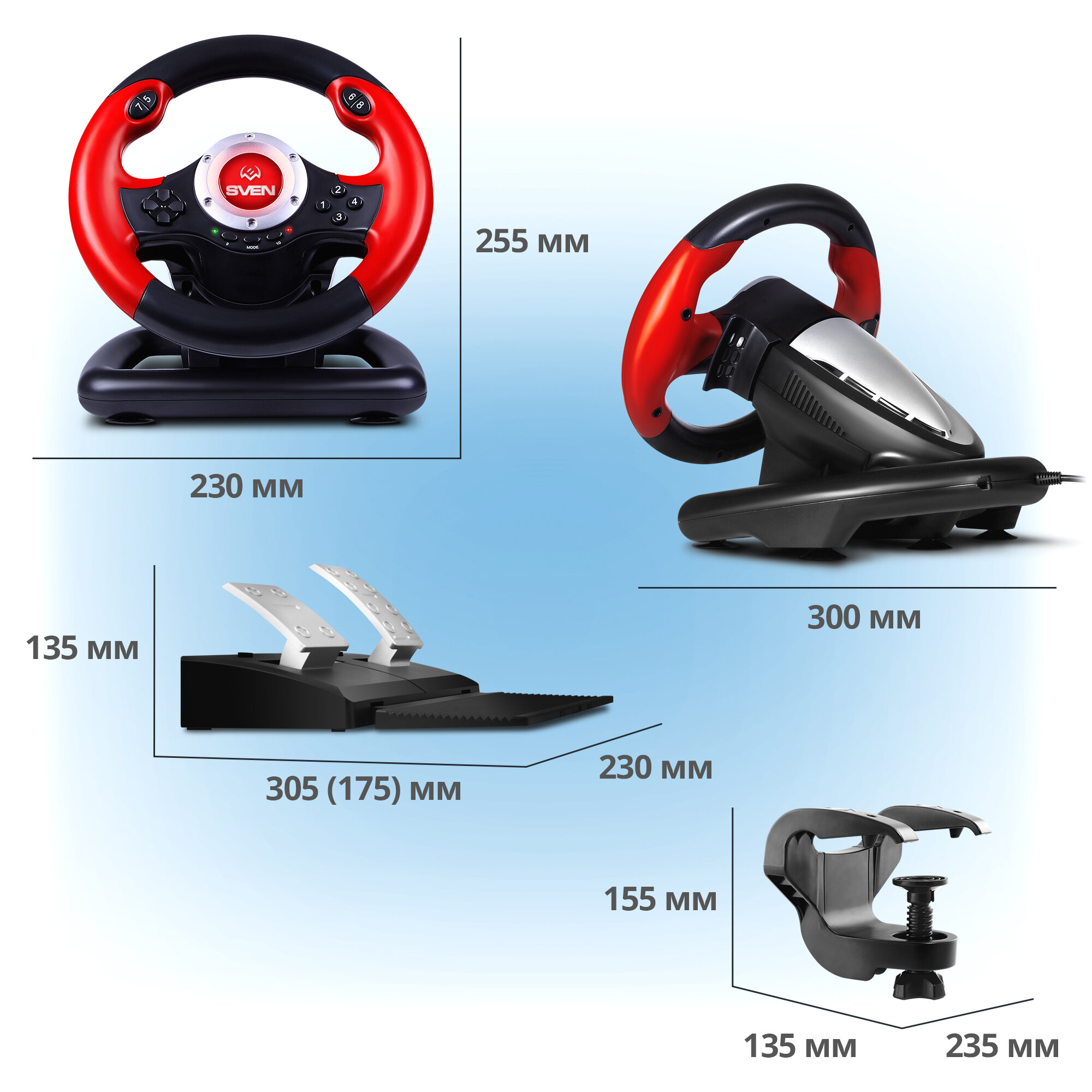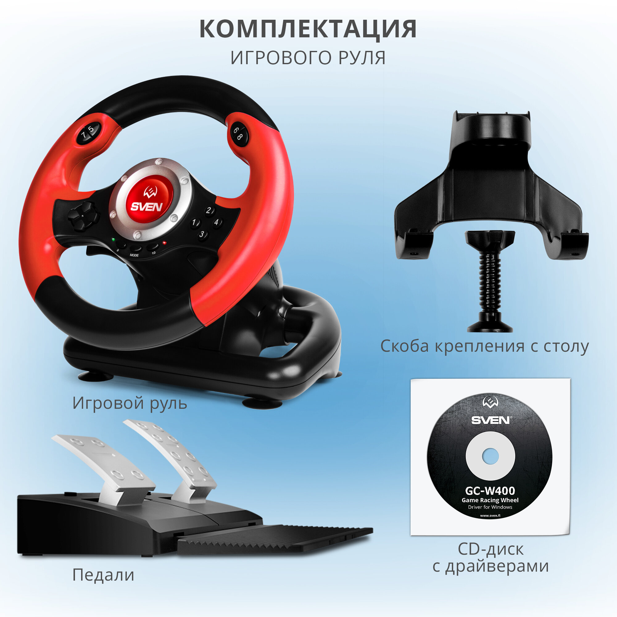 Руль SVEN GC-W400 черно-красный (USB, 8п джойстик)