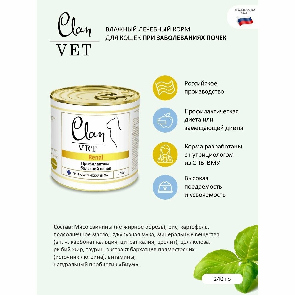 Корм Clan Vet Renal (консерв.) для кошек, профилактика болезней почек, 240 г x 12 шт