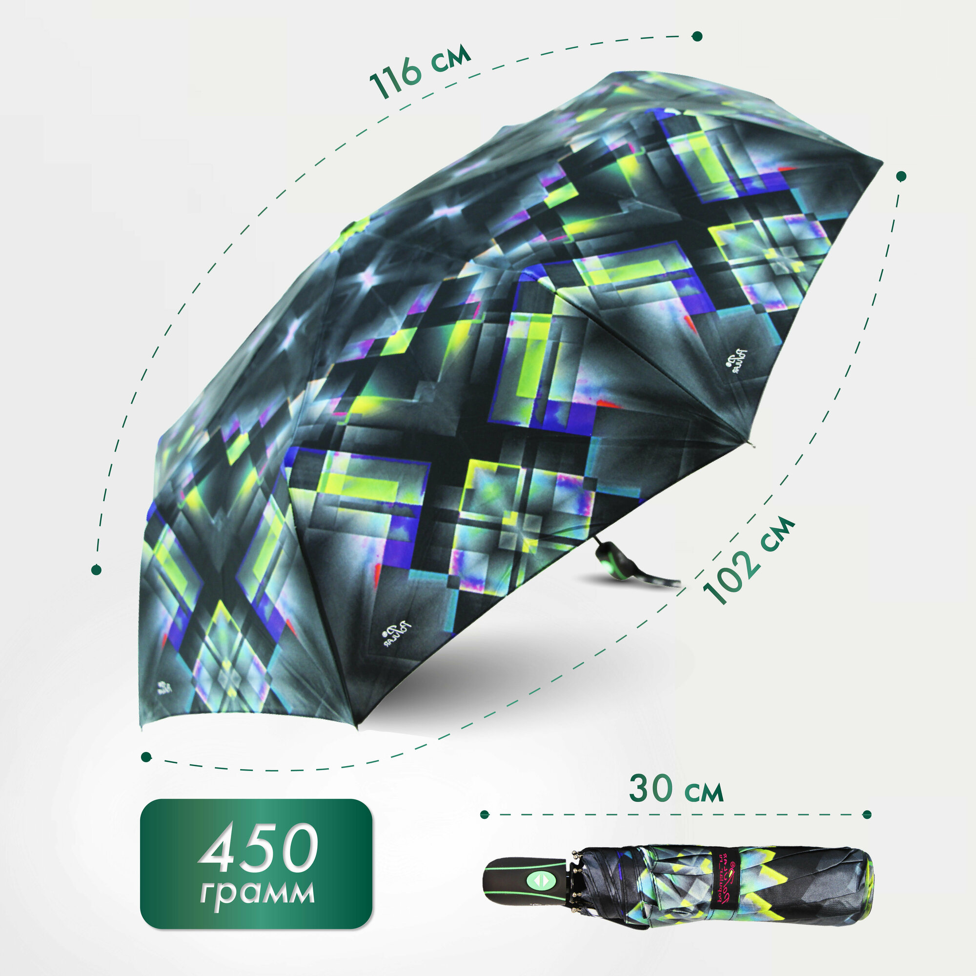 Женский складной зонт Popular Umbrella автомат 2609/зеленый