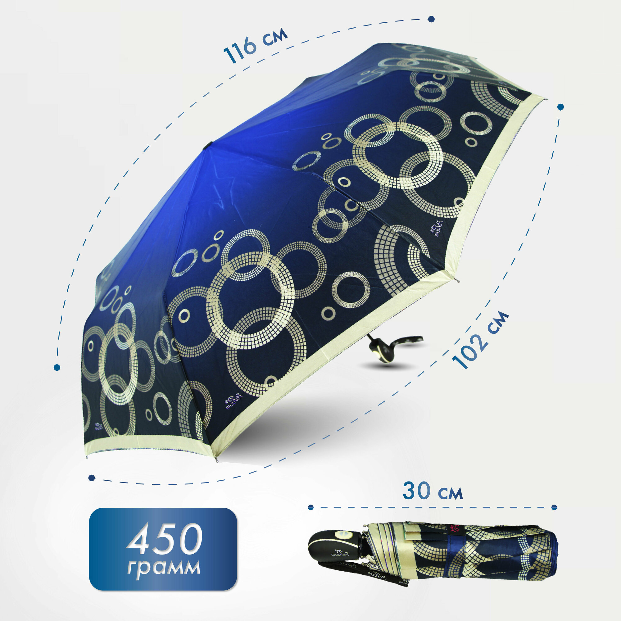 Женский зонт складной Popular Umbrella автомат 2609/ультрамариновый