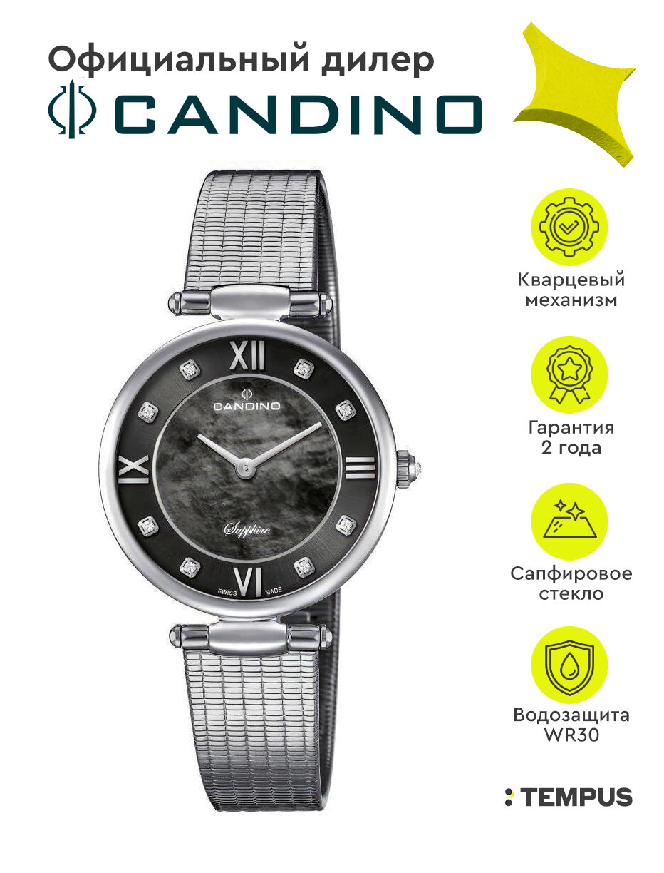 CANDINO C4666-2 женские швейцарские наручные часы с сапфировым стеклом и кристаллами